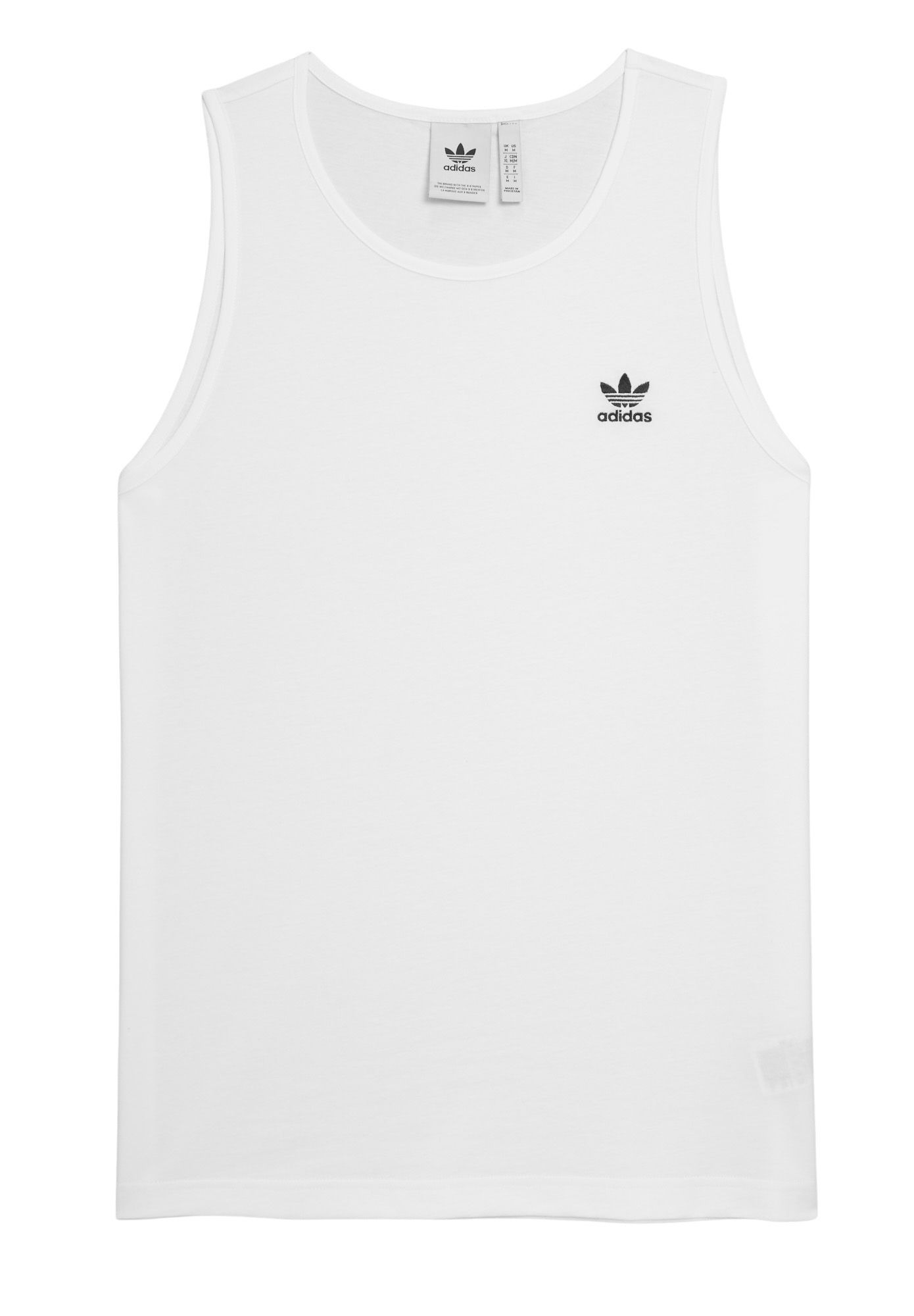 Fit & Design: Regular fit tank top Round neck with ribbed neckline delivers a comfortable fit Left chest embroidered stacked trefoil adds to your style Additional Details: Do not bleach Machine wash cold delicate cycle Wash dark colors separately Use mild detergent only Tumble dry low heat Do not iron motif Wash and iron inside out Touch up with warm iron Do not dry clean