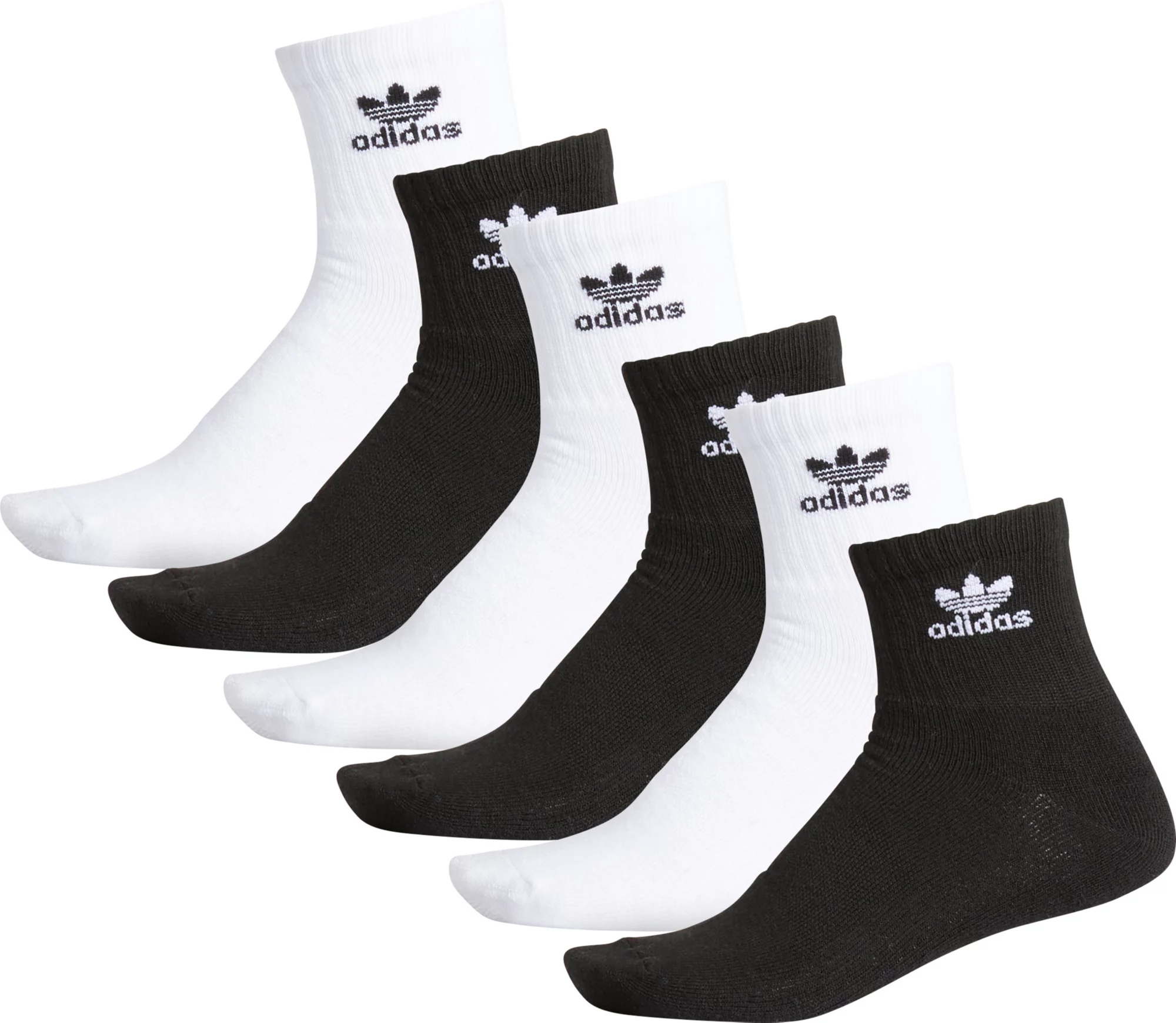 Freshen up your look with the throwback styling of the adidas® Men's Originals Trefoil Quarter Socks. The Original Trefoil socks are moisture-wicking, fashion-forward athletic socks that lend optimal comfort and style. Their arch compression lends a snug fit, while added cushioning keeps feet feeling fresh. Bring a laidback vibe to your wardrobe with the adidas® Men's Originals Trefoil Quarter Socks. FEATURES: Cushioned athletic quarter socks Moisture-wicking fabrics helps keep feet dry and cool Arch compression lens a snug, secure fit Cushioning adds comfort and durability SIZE CHART: Sock Size: Small= Shoe Size: Women’s 5.5-7.5 Sock Size: Medium = Shoe Size: Men’s 6.5-9, Women’s 8-10.5 Sock Size: Large = Shoe Size: Men’s 9.5-12, Women’s 10-12+ Sock Size: X Large = Shoe Size: Men’s 16-20