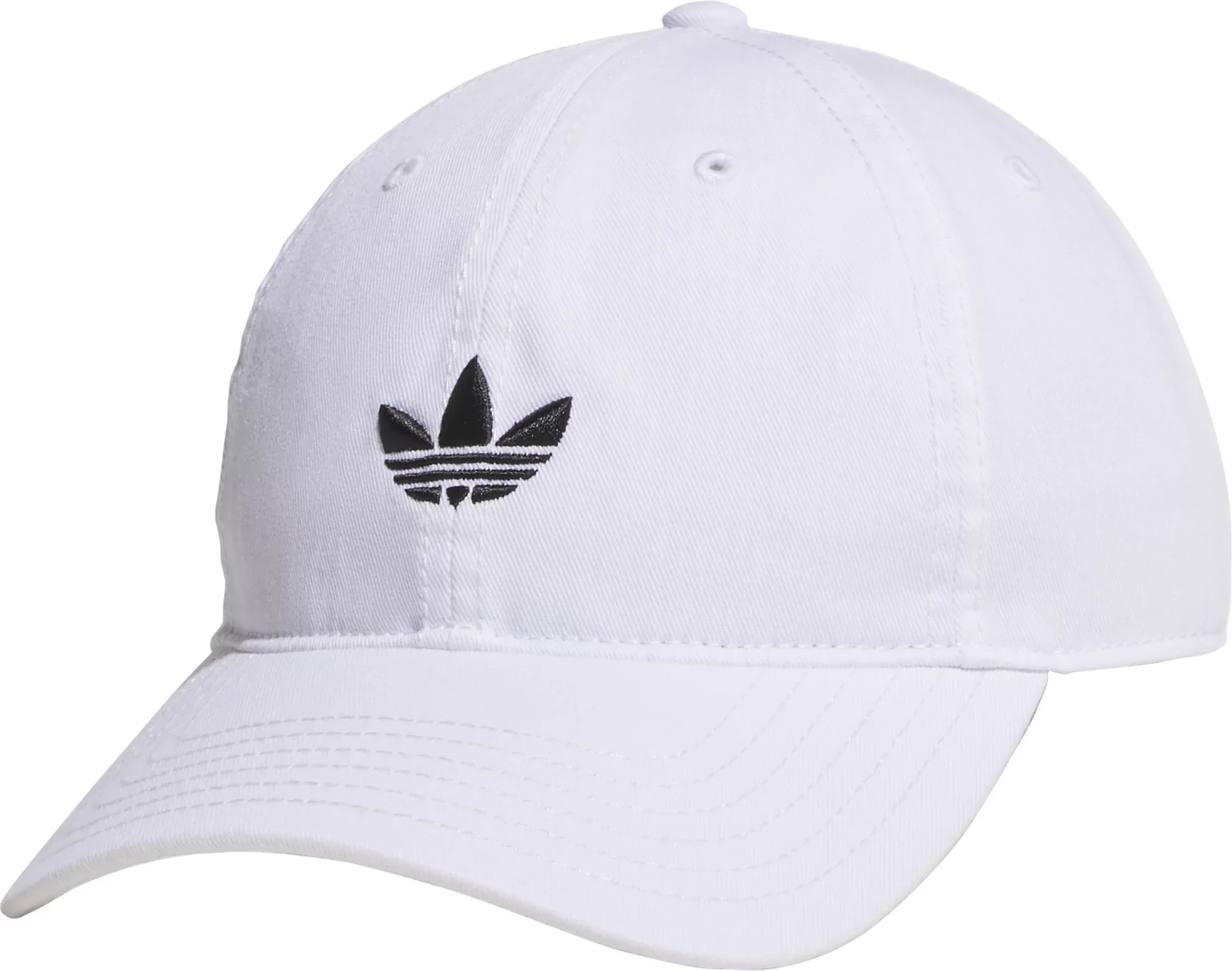 Practically destined to become a wardrobe staple, this adidas strapback hat serves up style and comfort you'll want to wear on repeat. While the pre-curved brim helps shade your eyes, an embroidered Trefoil stands out front and center. Adjust the fit, and you're set. Fit & Design: 6-panel relaxed silhouette Lofted embroidered trefoil logo Embroidered trefoil branding in back Medium pre-curve brim Strapback closure