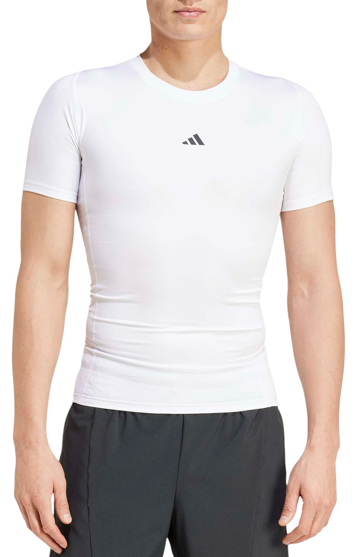 Fit & Design: A TECHFIT compression training tee made in part with recycled materials The new TECHFIT Compression fit is made of an AEROREADY single jersey and AEROREADY mesh for the back panel This mesh ventilation allows for a breathable fit that leaves you with no distractions With this product you will unlock your next level powerful moves with a compression fit that hugs your muscles