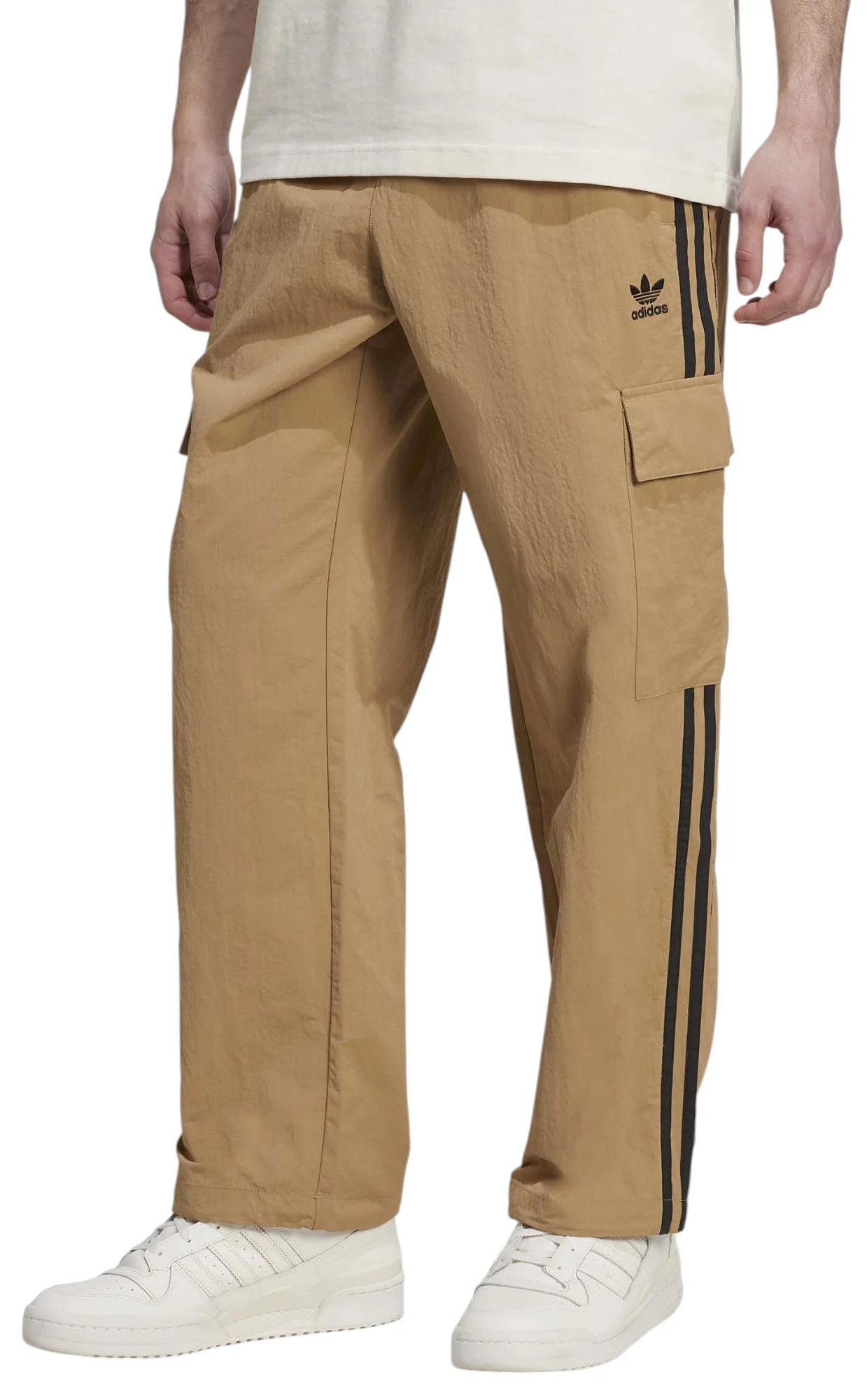 Fit & Design Loose fit cargo pants Drawcord on elastic waist Durable ripstop material Side zip pockets Cargo pockets with snap-button flaps Adjustable closures at all points ensure the perfect fit Iconic 3-Stripes down the legs Embroidered Trefoil on left thigh Additional Details Made with 100% recycled materials