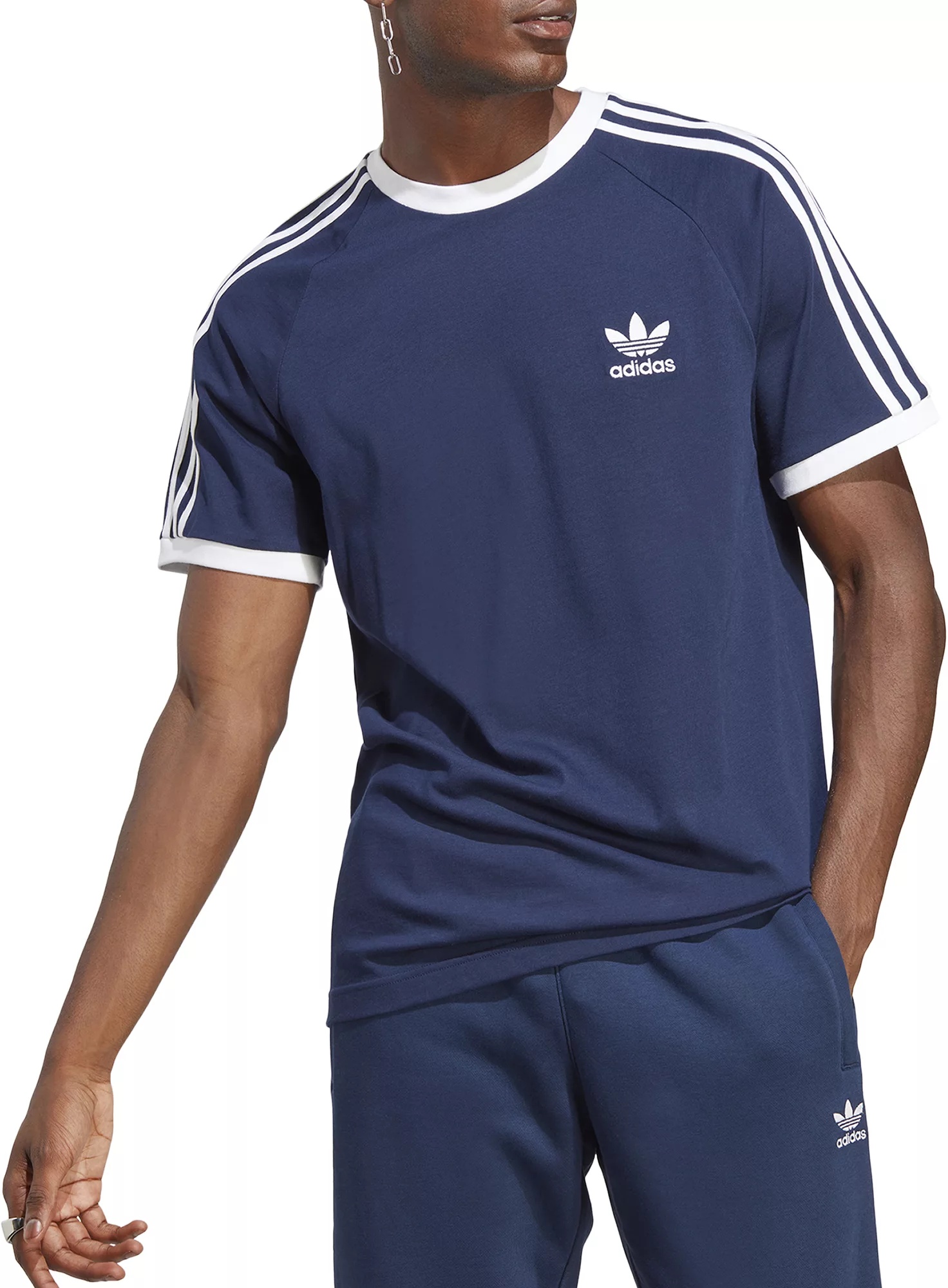 The adidas Originals Men’s Adicolor Classics 3-Stripes T-Shirt is a perfect blend of vintage vibes and modern comfort. Its slim fit and ribbed crewneck and cuffs provide a refined, stylish look, while the super-soft cotton ensures you stay comfortable all day. Complete with iconic 3-Stripes down the sleeves and the Trefoil logo at the left chest, this tee is a timeless addition to any wardrobe. This classic adidas t-shirt boasts a slim fit and a contrast hem for some refined vintage vibes. Pair it with your favorite dark denim for an effortlessly classic look. It's made of super-soft cotton to keep you comfortable. Fit & Design Slim fit t-shirt Contrast ribbed crewneck and cuffs offer refined vintage vibes Super-soft cotton keeps you comfortable Iconic 3-Stripes down the sleeves Trefoil® logo at left chest Additional Details adidas® cotton products support more sustainable cotton farming through Better Cotton™