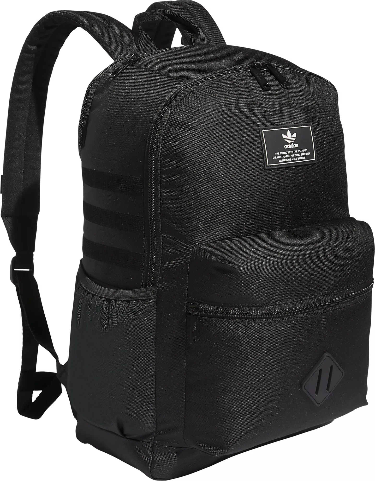 This adidas backpack provides on-the-go storage for work, school or travel. It's made with recycled content as part of adidas' commitment to help end plastic waste. Slip your laptop into the inner sleeve and store clothes, books and everything else in the multiple zip pockets Fit & Design: Lifetime Warranty - built to last Wipe-able lining for easy spot cleaning with soap and water Two side mesh water bottle pockets: fit up to 32 oz bottles Interior sleeve securely stores up to a 17 inch laptop Interior earbud and charger storage Additional Details: Dimensions: 44 cm x 15.25 cm x 30.5 cm Wipeable lining Interior sleeve stores up to a 43 cm laptop Interior earbud and charger storage Lifetime warranty