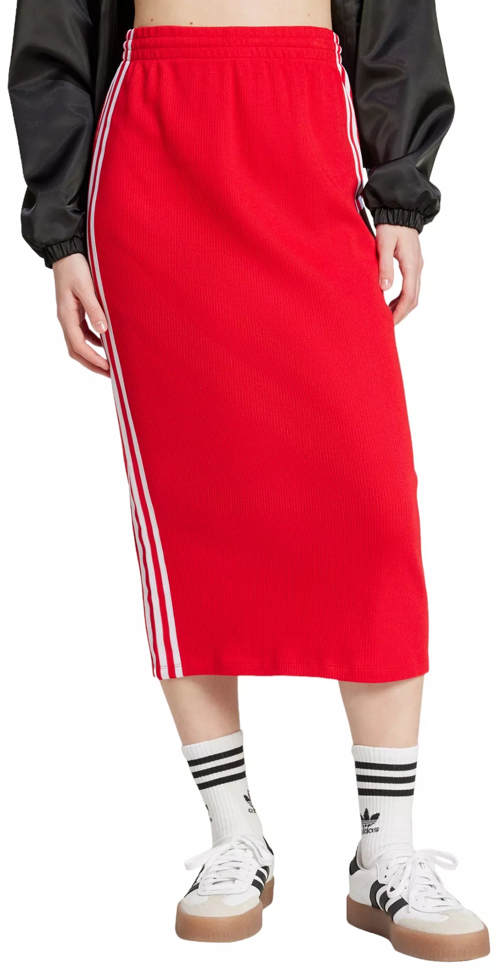 Move with confidence in this adidas skirt. The slim, doubleknit build provides a sleek silhouette that fits close to the contours of your body, following your every stride. Signature details give a subtle nod to their sporty heritage while elevating your look into fashion-forward terrain. Fit & Design: Slim fit Drawcord on elastic waist