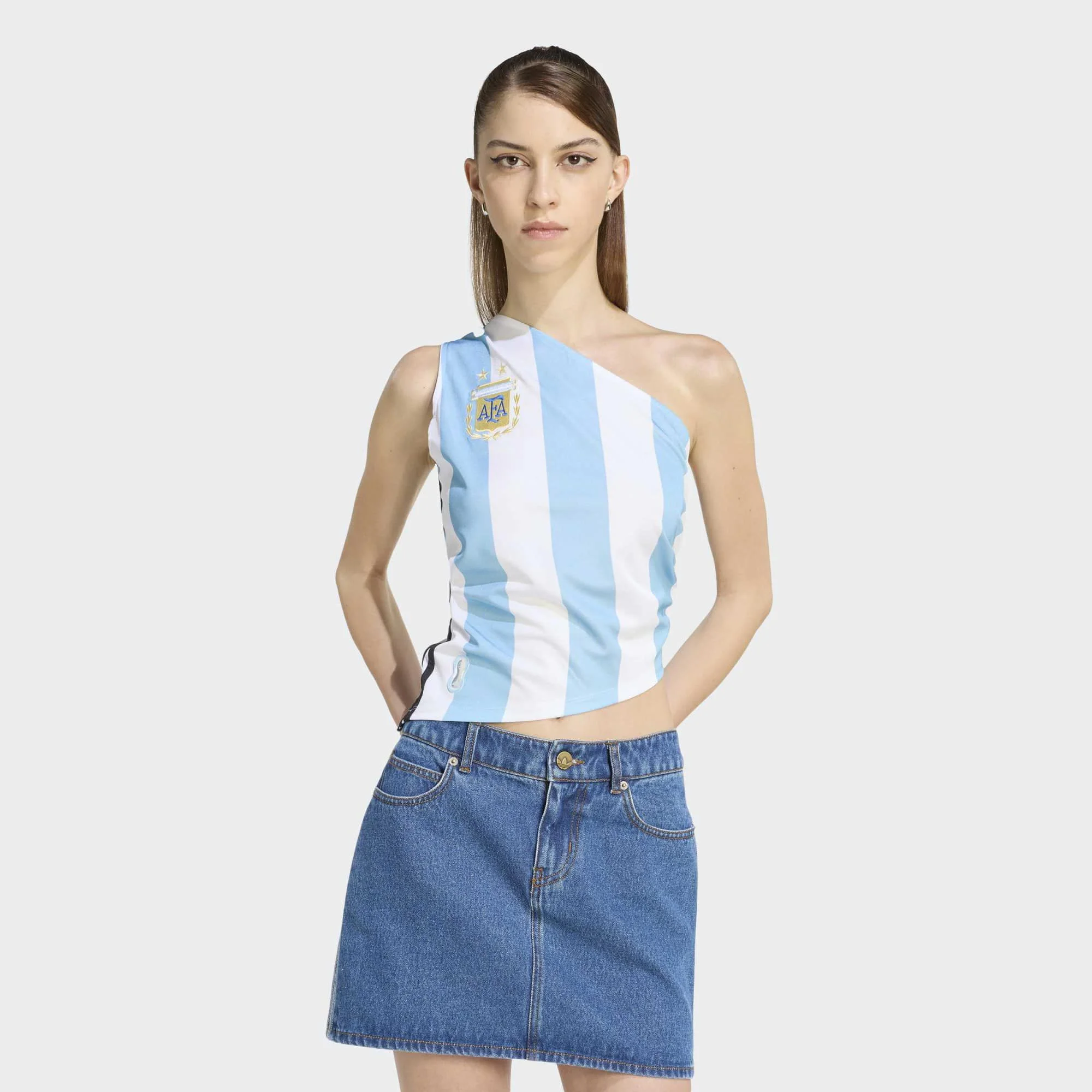 The Argentina Reconstructed Bringback Jersey is a celebration of heritage and innovation. Crafted from pique fabric, this jersey offers a slim fit that flatters and supports, making it a versatile addition to any wardrobe. From cheering on your team to enjoying a casual day out, the jersey is your go-to for effortless style and comfort. Fit & Design: Slim fit The off-the-shoulder neckline adds a touch of elegance The drawstring closure provides a comfortable and adjustable fit Pique fabric adidas branding elements Additional Details: True to size. We recommend ordering your usual size This model is 5' 10" and wears a size S. Their chest measures 31” and the waist 24”