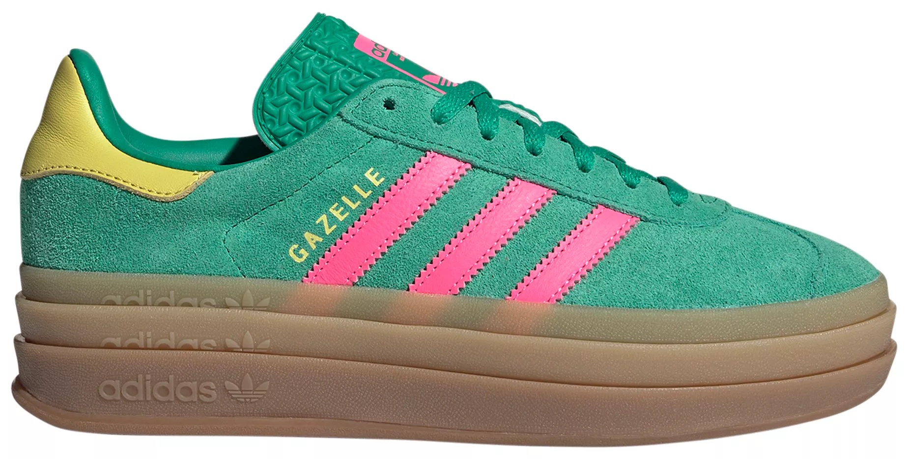 The adidas Originals Women's Gazelle Bold Shoes feature an iconic silhouette with bolder details, including serrated 3-stripes and a metallic-gold "Gazelle" accent. Designed for casual wear, these shoes boast a classic lace closure with a premium soft suede upper and a triple-stacked platform rubber outsole for added style and traction. Note that they run big, so it's recommended to size down by half a size for the perfect fit. Design: Iconic Gazelle silhouette with bolder details Serrated 3-stripes and a metallic-gold "Gazelle" Classic lace closure with a premium soft suede upper Durability & Traction: Tripled-stacked platform rubber outsole adds elevated style and traction Additional Details: Runs big, size down 1/2 size
