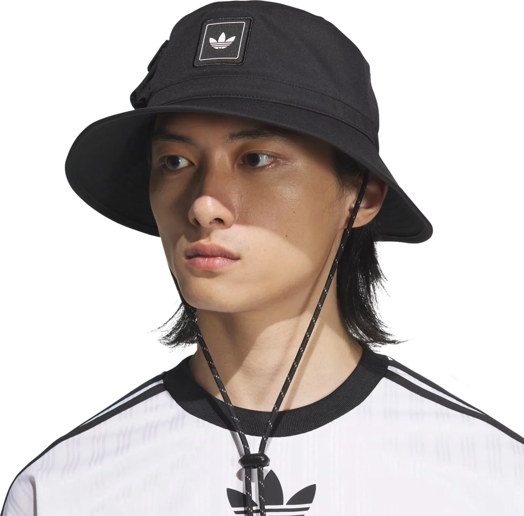 Whether exploring the wilderness or the streets of your city, you'll be made in the shade with this adidas boonie hat on your noggin. This version of the classic headwear has an extended brim and a little pocket on the side to stash something small. The chin strap adjusts with a sliding toggle. Fit & Design: Adjustable chin strap Extended brim Gusset pocket on side Adjustable bungee closure around crown Additional Details: