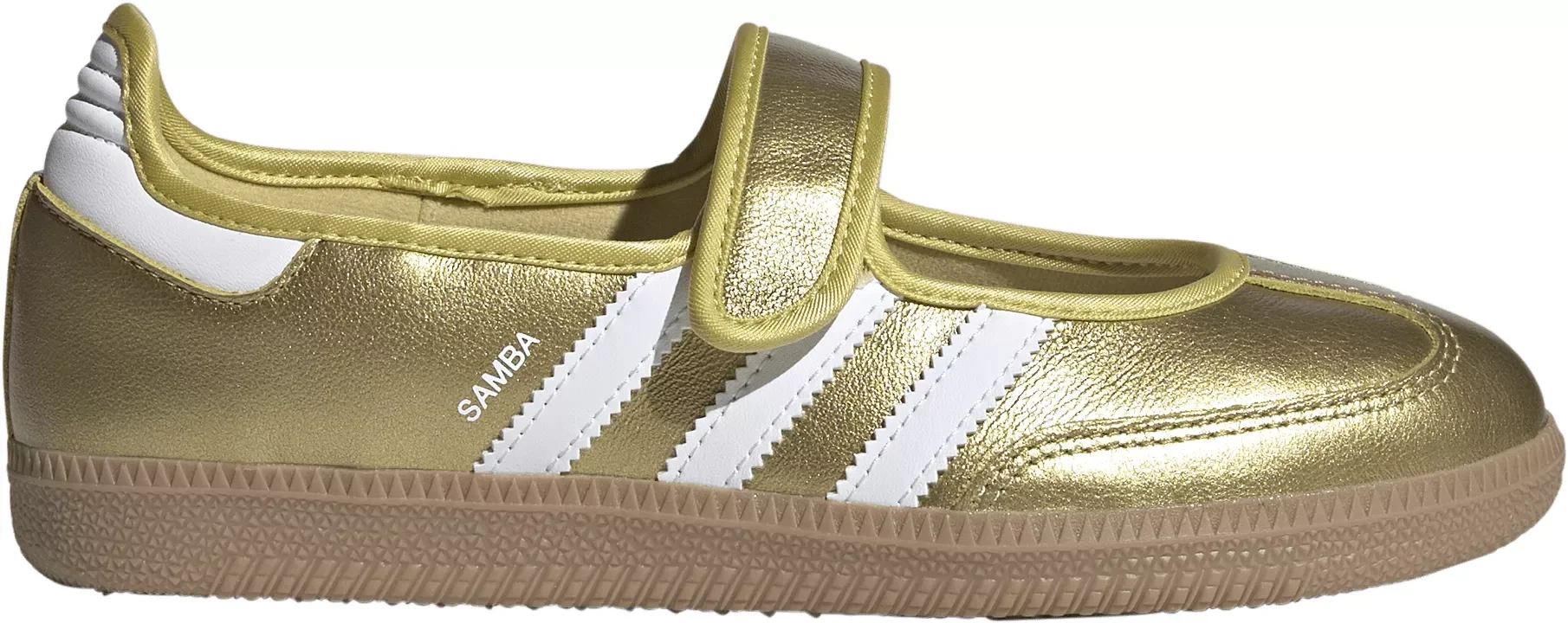 The adidas Samba shoes get a modern makeover, blending into a trendy Mary Jane aesthetic. With a smooth leather upper and signature serrated 3-Stripes, these low-profile shoes offer a fresh take on a heritage style. The smooth satin lining gives the shoes a luxe feel, and a grippy gum rubber outsole keeps the look classic. From indoor trainer to streetwear staple, the Samba's legacy continues to grow. Design Regular fit Lace closure Leather upper In-Shoe Comfort Synthetic lining Durability & Traction Rubber outsole