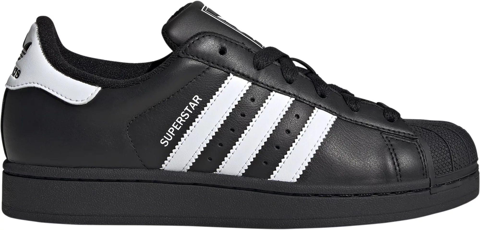 They've been on the scene for over 50 years and show no signs of slowing down. The adidas Superstar shoes bring iconic style to your everyday. A premium patent leather upper rides on a rubber outsole, providing all-day comfort. The signature shell toe completes the look. Design Lace closure Textile and patent leather upper Synthetic lining Branded tongue label Superstar sign off on lateral sign 3 Stripes branding Trefoil branded heeltab Regular fit Durability & Traction Rubber outsole for traction