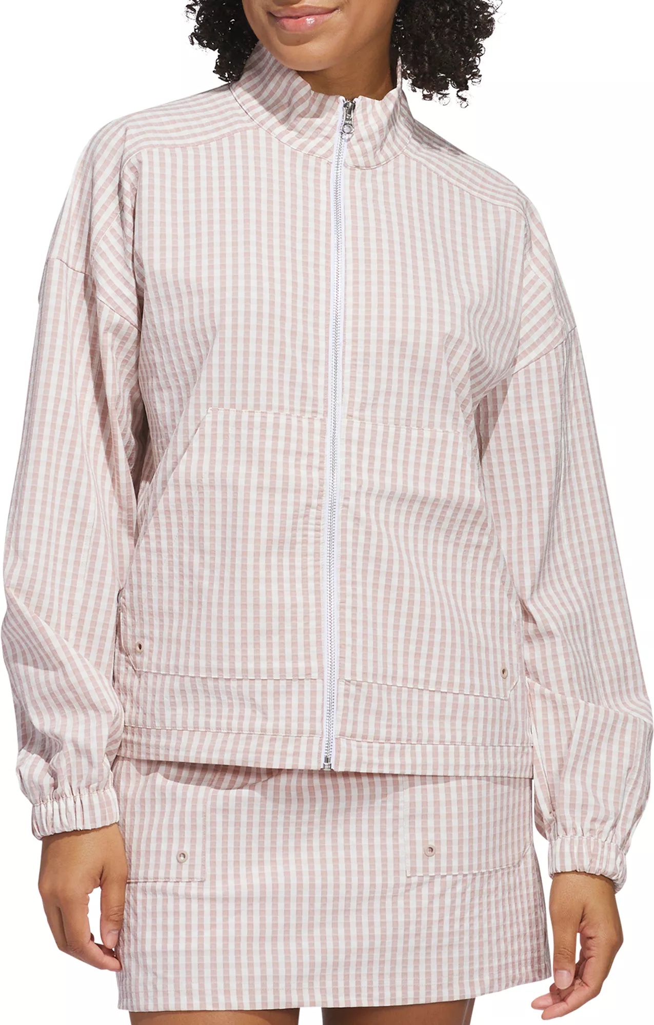 On the course, weather can change in an instant. The Ultimate365 Gingham Jacket is designed to adapt, providing a layer of comfort and protection when the clouds roll in. Made with a blend of recycled polyester and elastane, this jacket offers a loose fit for unrestricted movement during your swing. The full-zip design allows for easy on and off as conditions fluctuate. Made in part with recycled materials. Fit & Design: Loose fit - Designed to fit baggy on the body Full zip with stand-up collar Drop Shoulders Kangaroo pockets for storing your essentials Lightweight Additional Details: Made in part with recycled materials Wash with like colors. Remove promptly after wash. Do not use fabric softener. Use mild detergent only. Tumble dry low heat. Touch up with cool iron