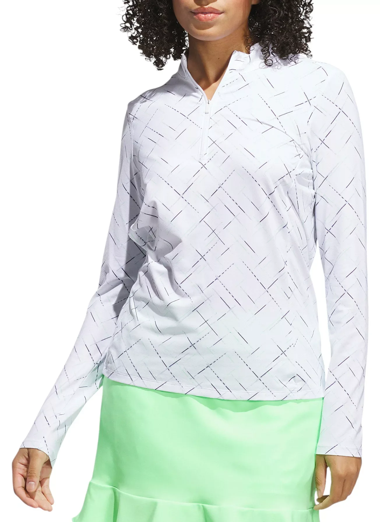 Cool days on the course call for versatile comfort that lets you focus on your swing. The soft stretch fabric of this adidas golf top moves with you as you twist and bend with every drive. A mock neck provides extra coverage for an elevated look that plays well on any course. Fit & Design: 1/4 zip is perfect for layering Mock neck Designed to be a standard fit, not too tight or too loose 4-way stretch for optimum comfort and maximum freedom of movement Cool touch material brings an instant cool feeling All-over print Technology: HEAT.RDY Additional Details: Made in part with recycled materials Machine wash cold, Tumble dry low heat