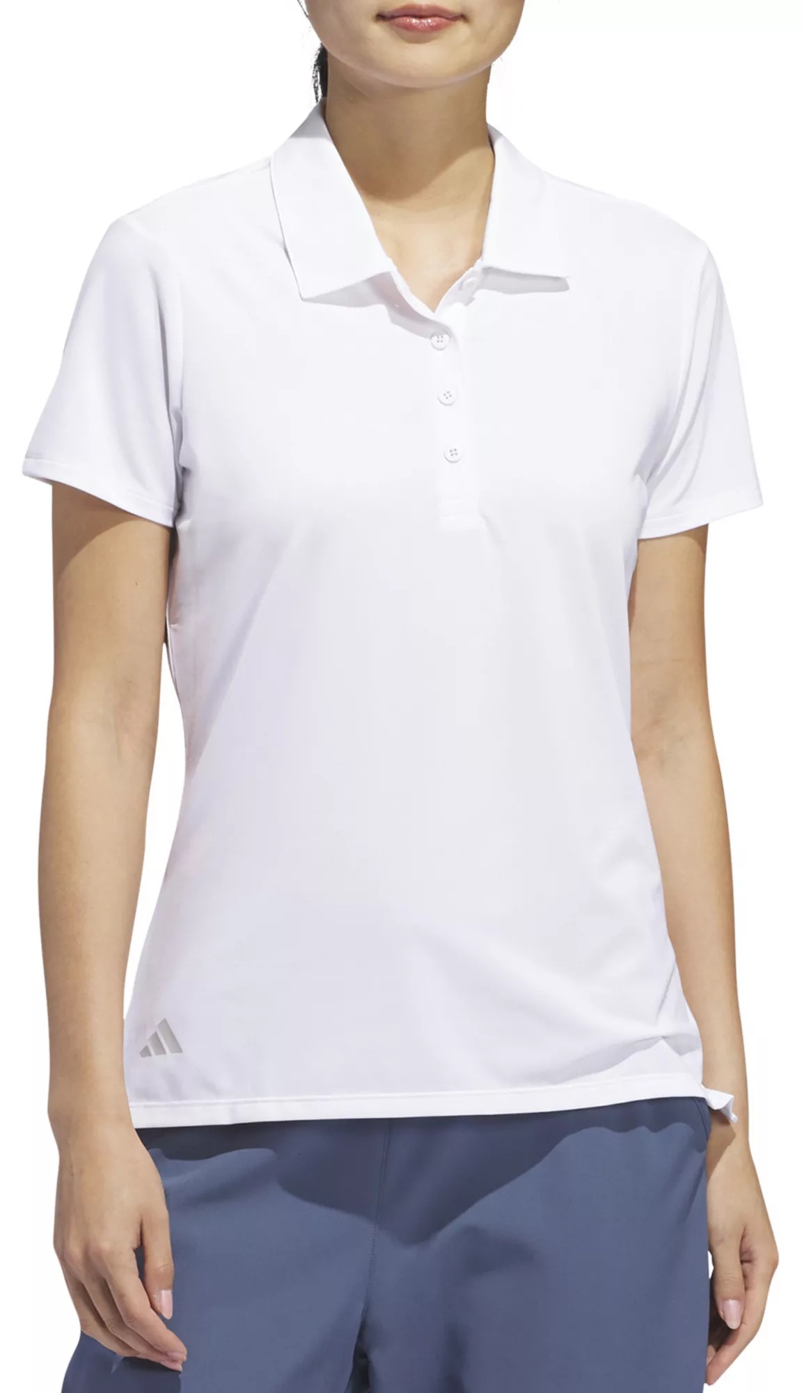 Take your game to the next level. Crafted from lightweight, sweat-wicking fabric, this adidas golf polo offers the breathability and the stretch to keep you comfortable and feeling your best through a full round and beyond. Stretch jersey maintains a natural range of motion and its clean look mixes and matches well with your favourite skort or pants. Fit & Design Regular fit golf polo Four-button polo collar Short sleeves Stretchy soft fabric Straight hem Side vents Technology Breathable and moisture-wicking Water-resistant finish helps keep you dry through every stroke Additional Details This product is made with at least 70% recycled materials to help reduce waste and our reliance on finite resources. Machine wash cold (with fasteners closed) Tumble dry low heat Touch up with cool iron Do not bleach Do not use fabric softener Do not dry clean