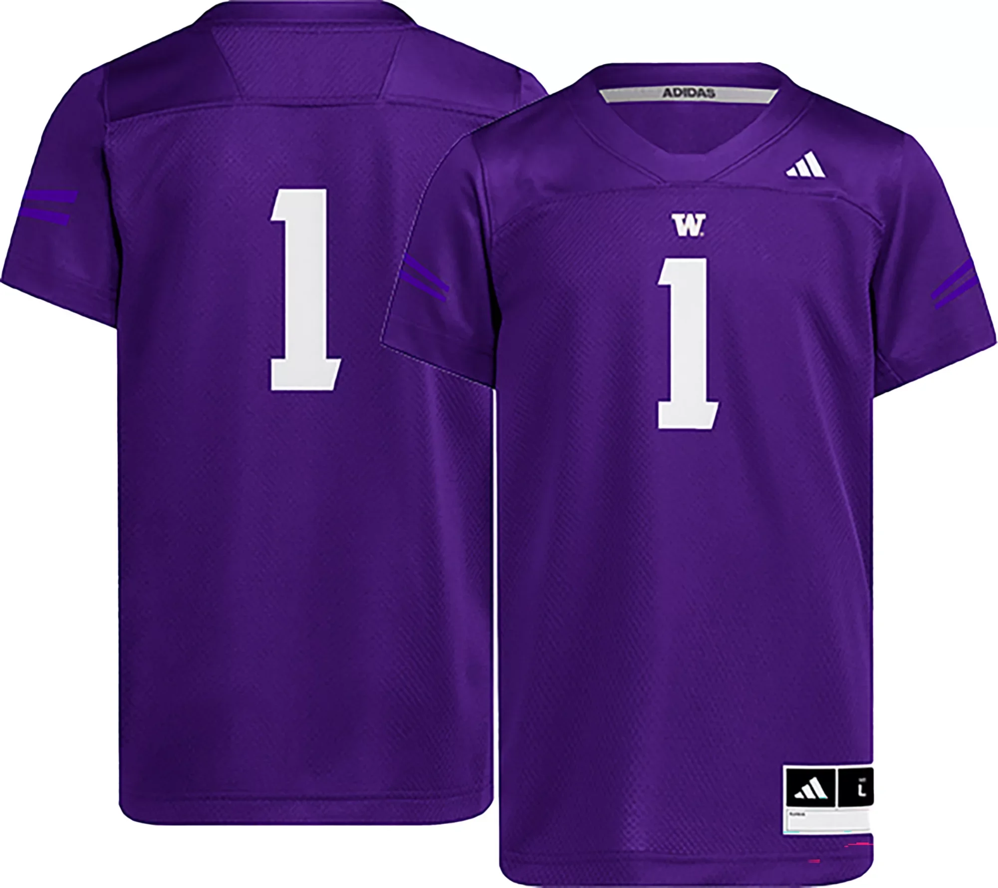 Design Short sleeve, replica football jersey Ribbed, tagless collar with interior taping Interlock sleeves, yoke, and collar Standard fit Style and Team Spirit Screen-printed team graphics Woven locker tag at left hem with alpha sizing and adidas® branding Additional Details Fits Youth Sizes: 8-20 Machine washable Officially licensed collegiate product