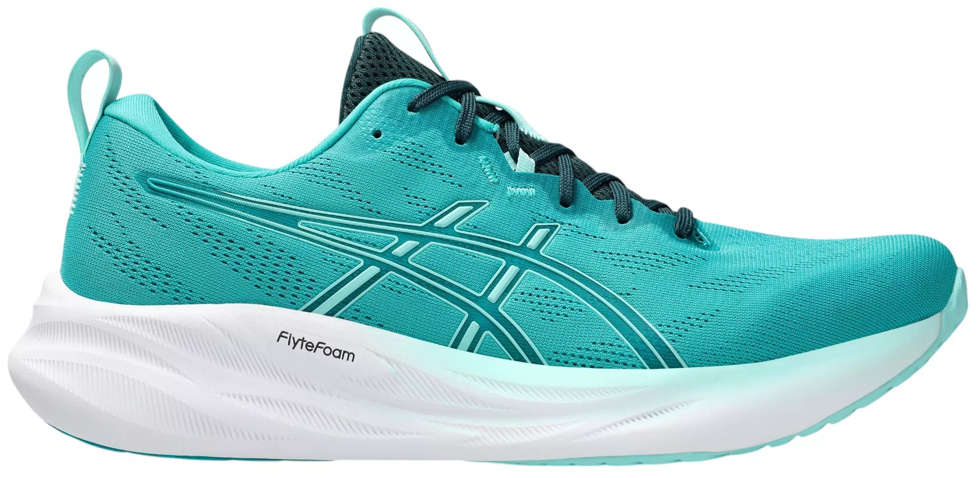 Design Engineered mesh upper improves airflow, keeping your feet cool and comfortable In-Shoe Comfort FLYTEFOAM™ cushioning is paired with GEL® technology to provide a soft feel underfoot Rearfoot GEL® technology improves impact absorption and creates a softer feeling at footstrike Durability & Traction AHARPLUS™ heel plug rubber helps improve durability Additional Details At least 75% of the shoe's main upper material is made with recycled content to reduce waste and carbon emissions The sockliner is produced with the solution dyeing process that reduces water usage by approximately 33% and carbon emissions by approximately 45% compared to the conventional dyeing technology Surface: Road Heel Drop: 8 mm Weight: 240 g (8.5 oz)