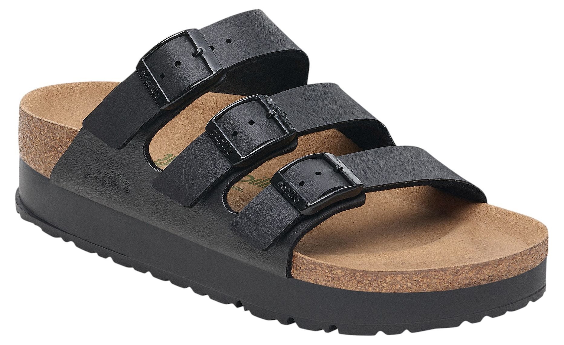 Style and support on another level. The Florida sandal is updated in our signature Birko-Flor® material and given a lift from a flexible platform sole. Designed on a contoured footbed so supportive, you'll want to reach for a higher heel. Design: Contoured cork-latex footbed creates custom support with wear Birko-Flor® synthetic upper Microfiber footbed lining 1" flexible platform EVA sole Three adjustable straps with metal pin buckles