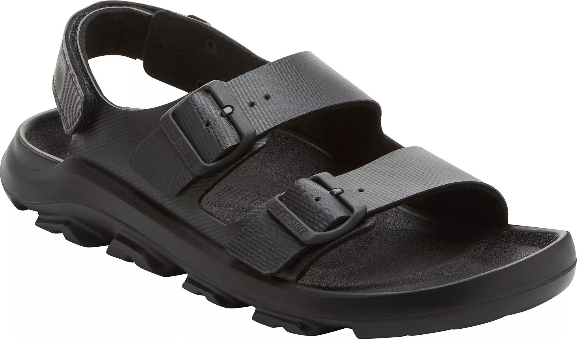 Design: Skin-friendly Birko-Flor® upper is durable and easy to clean Hook-and-loop backstrap and two adjustable straps for a completely custom fit In-Shoe Comfort: Waterproof contoured PU footbed provides support Deep heel cup supports the foot tissue and holds the heel bone firmly in its natural position Heel mould activates the calf muscles, stabilizes the back of the foot, and improves gait and coordination Added support for the interior and exterior arch Transverse arch support runs through the middle of the footbed and stabilizes the metatarsal bone for a solid stance Raised indentations at the front of the footbed ensure that the toes remain loose and spread out in their natural position Drawn up footbed protects the toes during the rolling motion of the foot Durability & Traction: Trail-ready rugged PU sole for flexibility and all-terrain grip