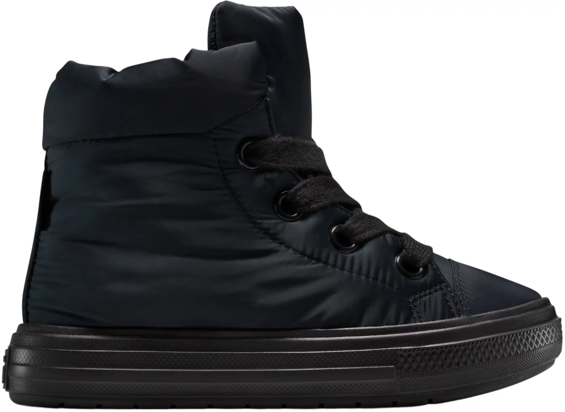 Toasty as a sleeping bag, cool as your favorite Chucks. These cozy puffer boots bring the heat—in style and function. Plus, oversized details give every 'fit a dramatic edge. Design: A water-repellent, insulated polyester upper helps keep you warm and dry Iconic Chuck Taylor ankle patch and All Star license plate In-Shoe Comfort: OrthoLite cushioning helps provide optimal comfort Cozy fleece lining helps lock in warmth Durability & Traction: Rubber cupsole adds durability and traction Traction rubber outsole helps provide grip on wet and slippery surfaces