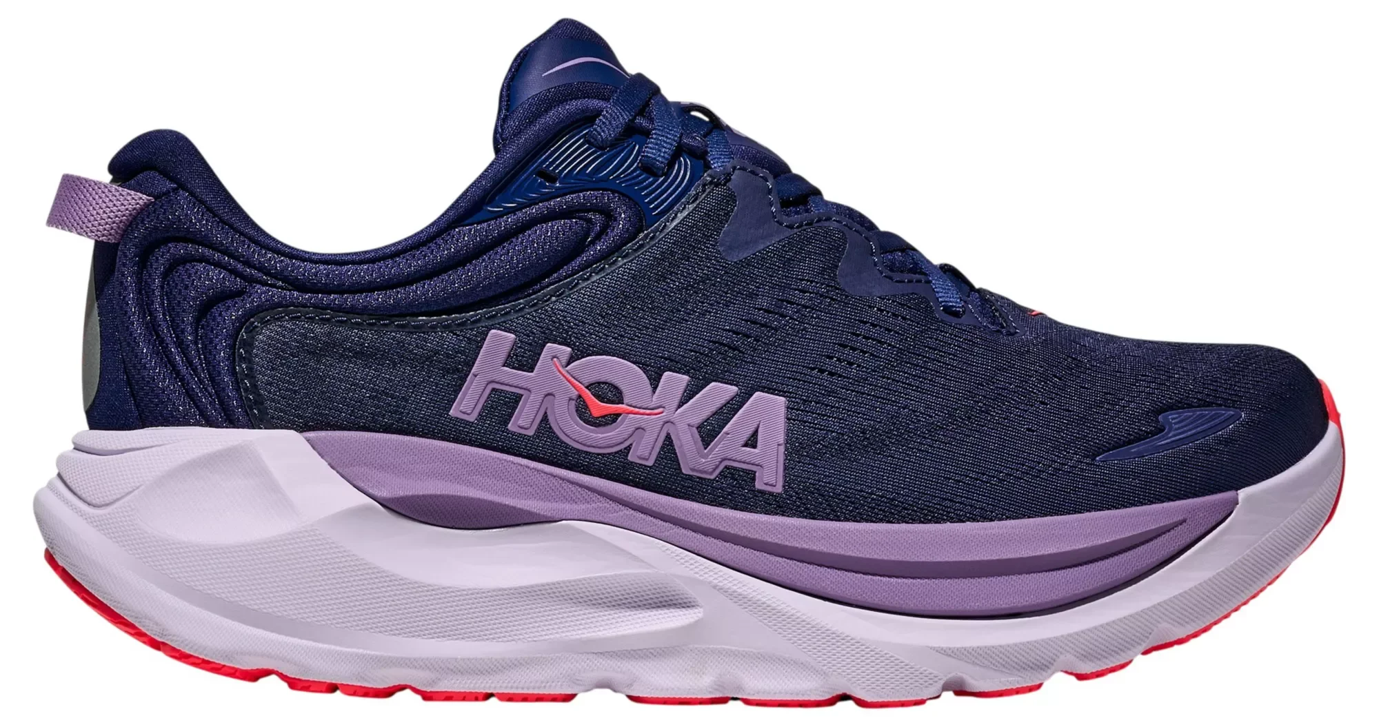 Forget what you thought you knew about stability shoes. The Gaviota 6 allows you to chase your daily miles while delivering a smoother ride than ever before. The secret? HOKA’s enhanced H-frame™ technology. Designed to combat overpronation without rigid materials, the stabilizing frame ensures a smooth entry into the gait cycle. Paired with a comfort-driven mesh upper, feel-good-collar, and high-abrasion rubber outsole, they’ve finished the Gaviota 6 with an internal lacing system to ensure a locked-in feel. What’s New: Updated with HOKA’s enhanced H-frame™ technology, you’ll find a plusher collar, elevated mesh upper, and internal ghillie lacing system Design: Breathable engineered mesh Reflective details Comfort collar Internal ghillie lacing system In-Shoe Comfort: Enhanced H-Frame™ Compression molded foam Durability & Traction: Abrasion-resistant rubber outsole Additional Details: Drop: 6 mm Weight: 8.62 oz (Women’s size 8)