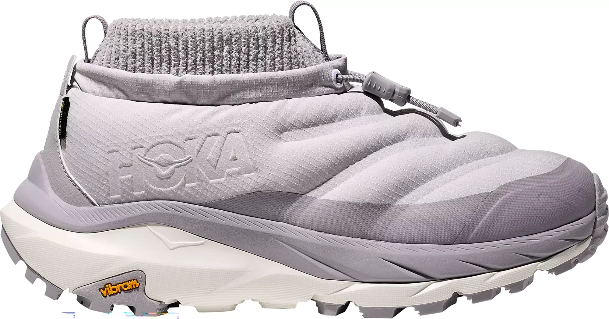 It's like your favorite waterproof hiking shoe had a love child with a cozy sleeping bag—meet the all-new Kaha 2 Frost Moc GTX. We stuffed quilted panels with puffy insulation, added a cozy stretch-fleece top collar, then combined it with our plush Kaha 2 bottom and trail-ready Vibram® Megagrip rubber to make the apres-adventure slip-on style of your dreams. The quick-lace toggle makes adjustments with gloves effortless, while a GORE-TEX membrane and water-repellent finish keep feet dry and toasty—the only thing missing is the hot chocolate. FEATURES: Cold-weather rated to -32°C/-25°F 300g total insulation Waterproof GORE-TEX membrane PrimaLoft® Black Stretch-fleece top collar with 35% recycled polyester Quick-lace toggle closure with recycled bungee lace Vibram® Megagrip outsole with Traction Lug 5 mm lugs 91% recycled ripstop polyester upper Dual-density CMEVA midsole with HUBBLE® heel and SwallowTail™