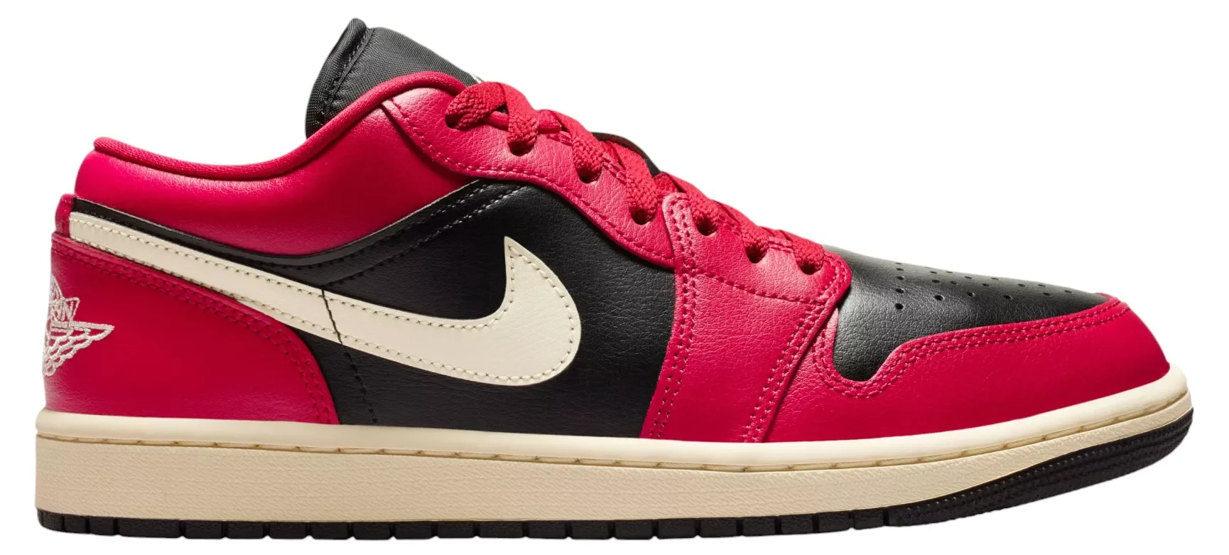 The Air Jordan 1 Low Women's Shoes seamlessly blend a high-end mix of leather and synthetic materials with a stylish stitched Swoosh design and perforated toe for added flair. An encapsulated Air unit in the heel and foam midsole ensure lightweight cushioning and all-day comfort. The durable rubber outsole offers ample traction, making these sneakers perfect for both athletic activities and casual wear. Design: High-end mix of leather and synthetic materials in the upper Stitched Swoosh design Perforated toe In-Shoe Comfort: An Air unit is encapsulated in the heel, providing lightweight cushioning Foam midsole Durability & Traction: Rubber outsole provides ample traction Additional Details: Product shown in Men's and Women's sizes Example: M7.5/W9.0 = Men's size 7.5, Women's size 9.0