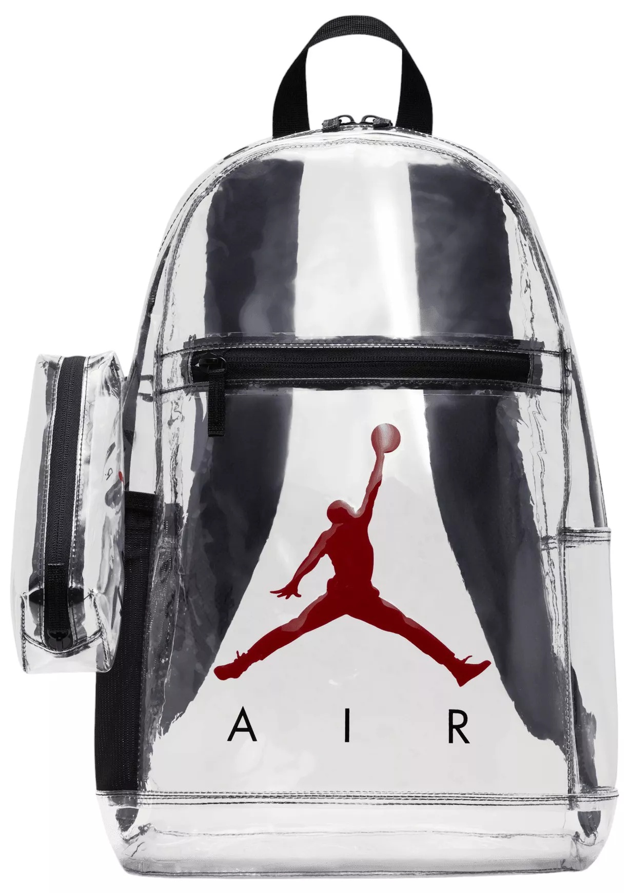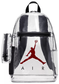Fit & Design: Clear Jordan school backpack Transparent yet durable material Spacious interior for all schooling needs Included clear pencil case with clasp Adjustable padded straps for comfort Additional Details: Spot clean