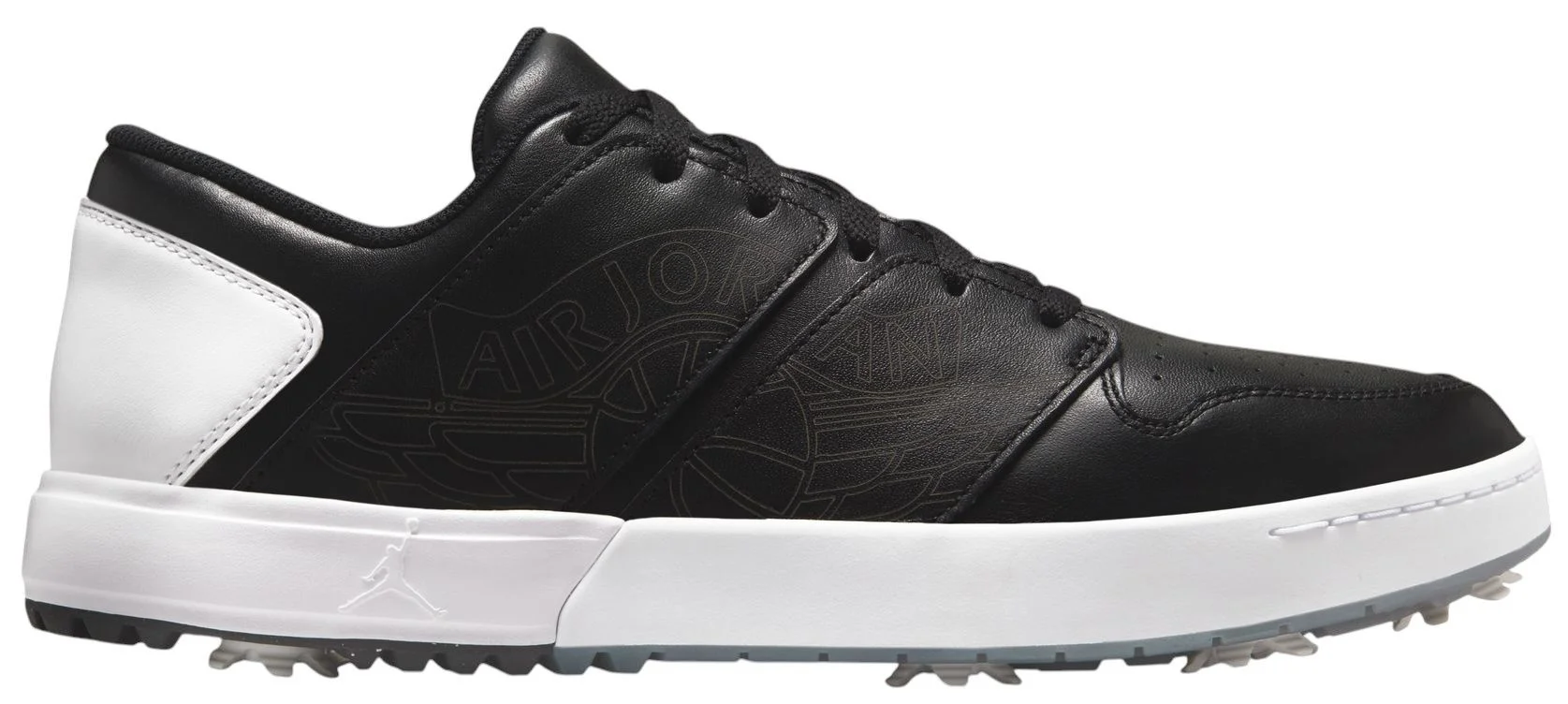 An instant classic on the course, the Jordan NU Retro 1 G melds iconic Jordan style with our latest golf technology. A rubber heel and durable plastic forefoot plate help give you stability and comfortable cushioning. Seven removable spikes add traction, so you're ready for swift swings and walking the course. DESIGN: A mix of real and synthetic leather in the upper helps add durability and structure IN-SHOE COMFORT: Added an Air unit to the heel to help give you stability and stiffness without loosing out on comfortable cushioning Foam grip heel and robust tongue provide all day comfort Midsole is made of an upgraded soft foam DURABILITY & TRACTION: Seven removable spikes and secondary traction for ultimate grip Midboot band provides an ideal amount of lateral support Solid plastic forefoot plate with a rubber heel