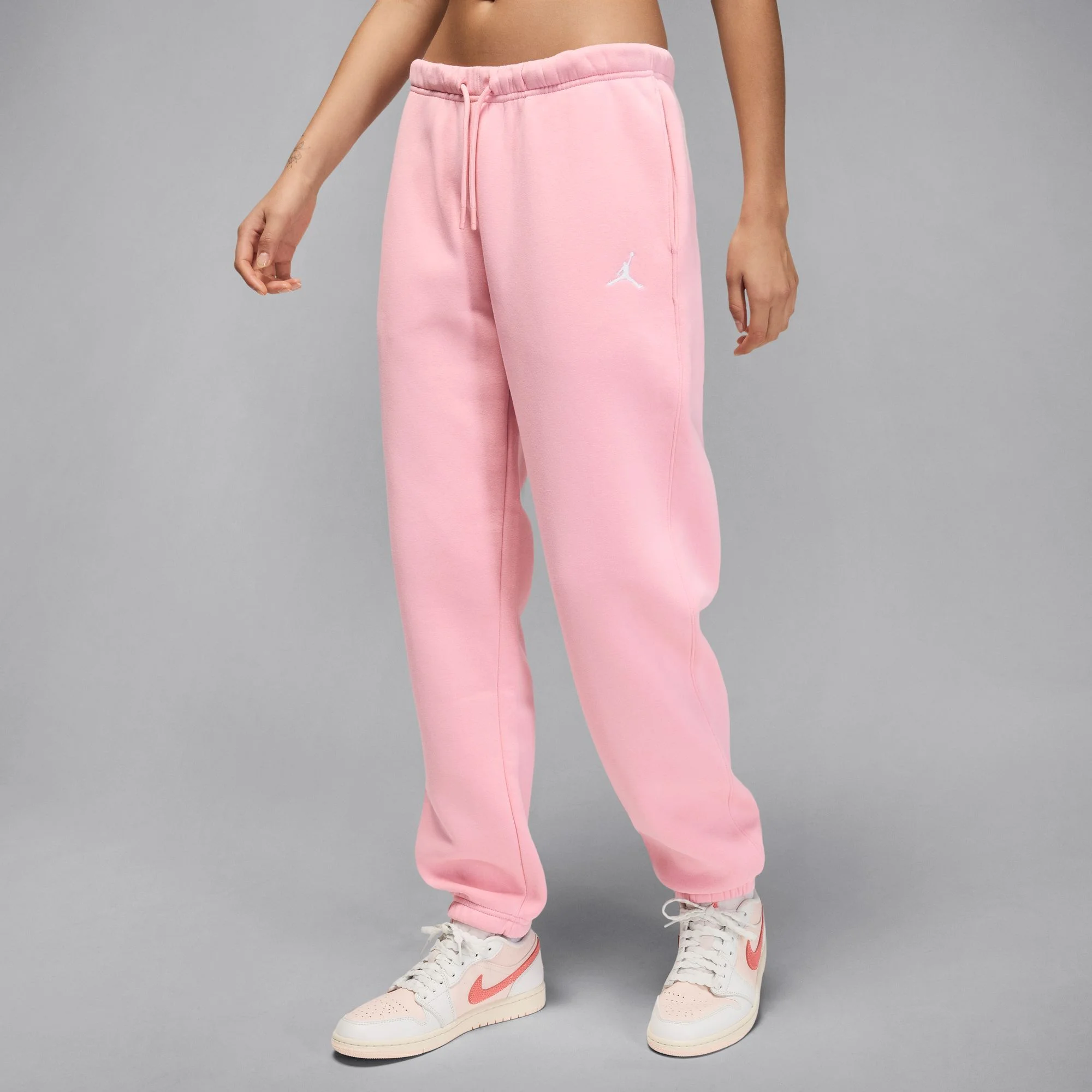 Sweats for every day of the week? Yeah, we got 'em. Smooth on the outside and brushed soft on the inside, this midweight fleece gives you all the cozy feels with a roomy, relaxed look. An elastic waistband with drawcord makes finding your perfect fit a cinch. Fit & Design: Loose fit: roomy and relaxed Full length: hits below ankle Elastic cuffs Side pockets Embroidered Jumpman