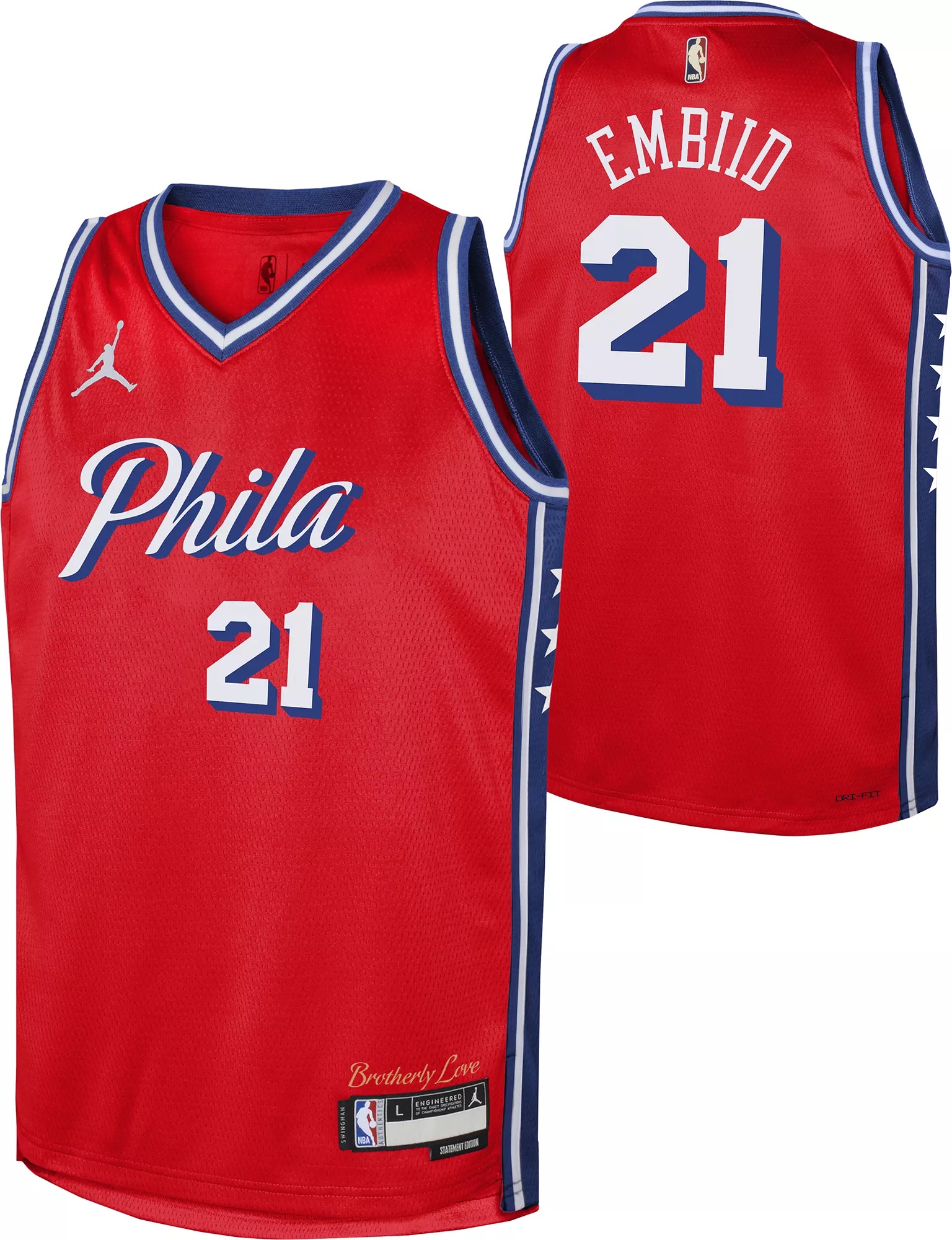 Jordan Youth Philadelphia 76ers Joel Embiid #21 Red Dri-FIT Swingman Jersey