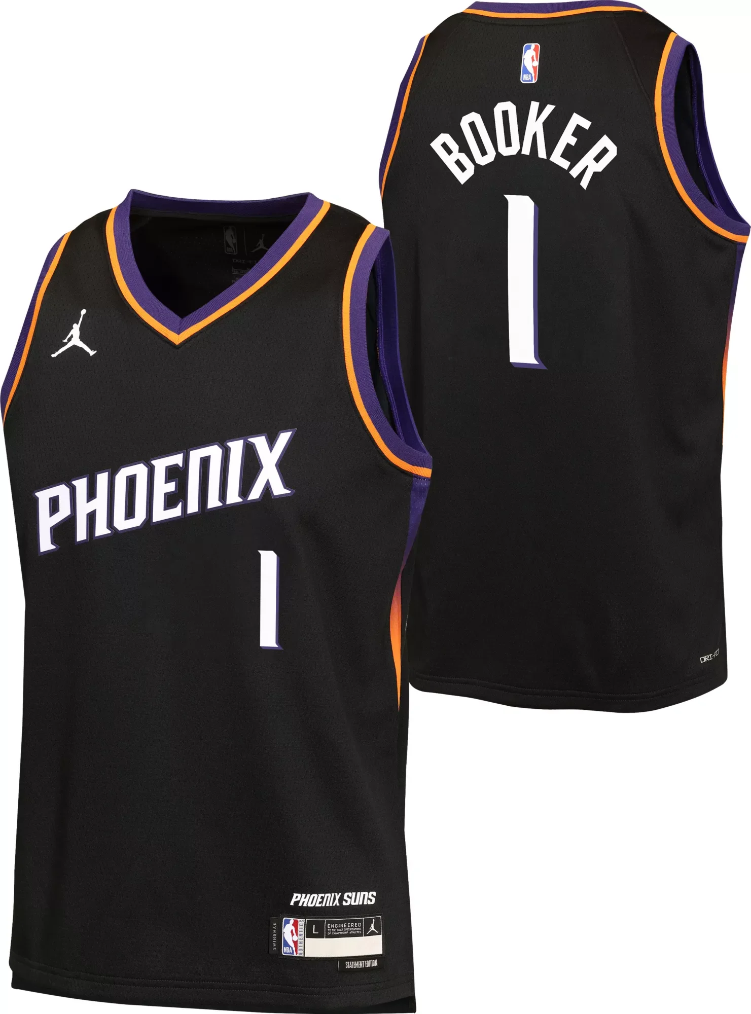 Jordan Youth Phoenix Suns Devin Booker #1 Black Replica Statement Jersey