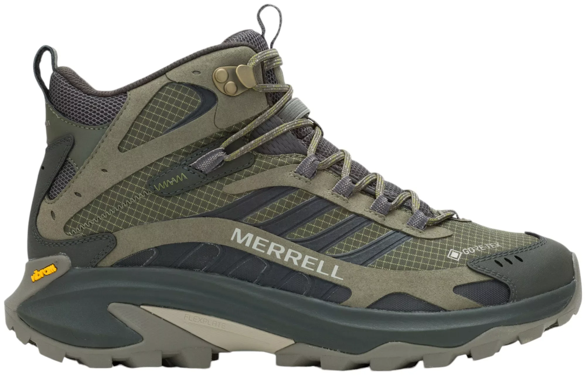 The Moab Speed 2 GORE-TEX® is the latest innovation in hiking from Merrell. This new and improved generation of hiking shoes pairs the knowledge and trail insights from the best-selling hiking boot, the Moab, with the latest innovations from athletic hikers across the globe. FEATURES: GORE-TEX waterproof membrane, exceptional breathability and waterproof performanc 100% recycled laces and webbing Padded collar Bellows tongue keeps out debris Dual heel and tongue loops for ease of entry as well as carabiner compatibility Protective and abrasion resistant synthetic heel 100% recycled breathable mesh lining 100% recycled mesh footbed cover 50% recycled removable EVA foam footbed Lightweight FlexPlate™ technology provides torsional rigidity, lateral stability, and forefoot flexibility FloatPro™ Foam midsole for lightweight comfort that lasts Cleansport NXT™ treated for natural odor control Vibram traction lugs specifically designed to increase traction and shed debris with each step Vibram TC5+ outsole provides exceptional traction for outdoor multi-sport activities, formulated exclusively for Merrell