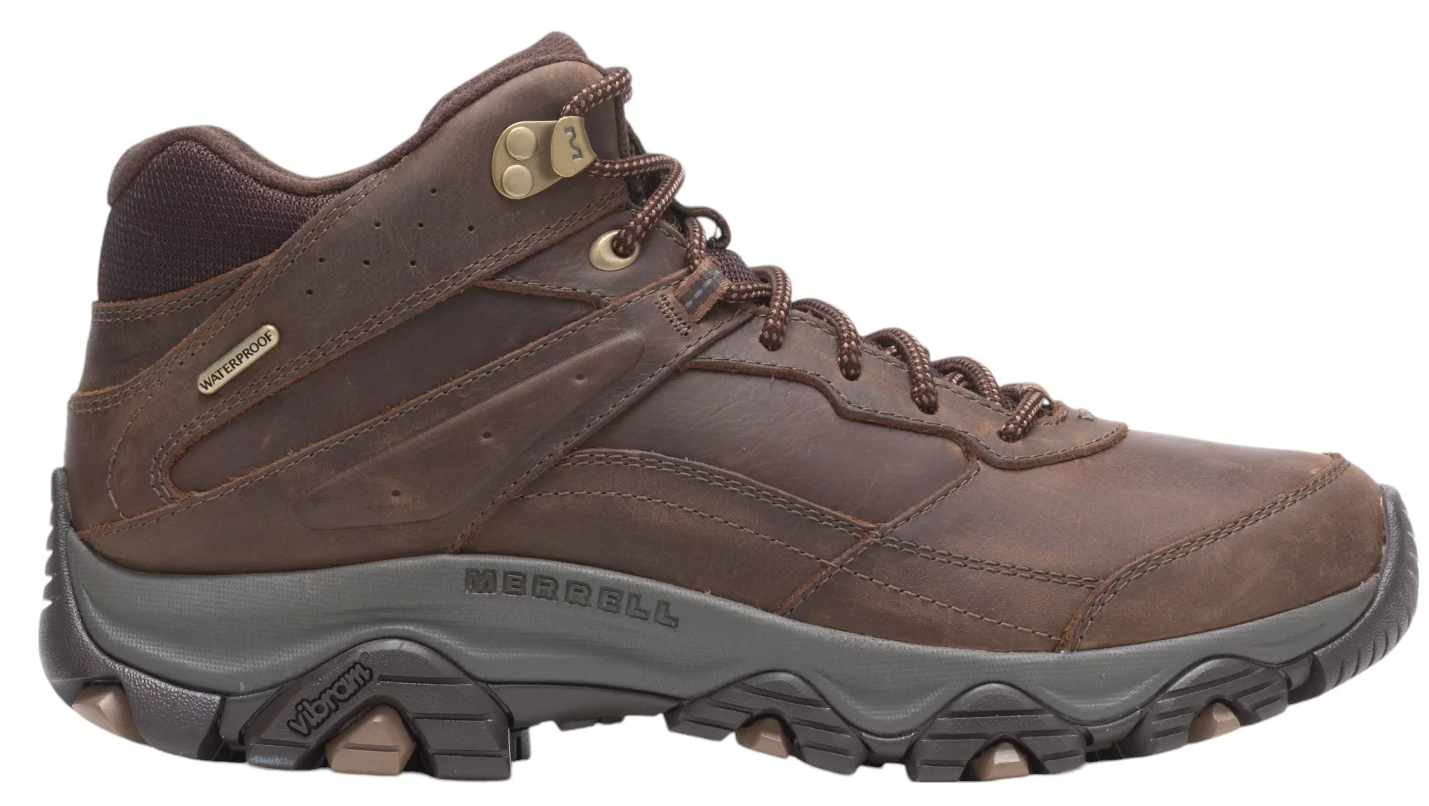 Get all-day comfort with the same out-of-the-box fit you expect from Moab. The Moab Adventure 3 WP delivers a lifestyle look along with technical features such as a Vibram® TC5+ outsole and a Merrell waterproof membrane to keep you dry. FEATURES: Waterproof membrane seals out water and lets moisture escape Waterproof full grain leather upper 100% recycled laces and webbing 100% recycled microfiber lining 100% recycled mesh footbed cover Cleansport NXT™ treated for natural odor control Removable PU footbed Merrell Air Cushion in the heel absorbs shock and adds stability Molded nylon arch shank Super Rebound Compound midsole provides durable shock absorption to help reduce torque and allow for a smooth transition into the midfoot Vibram TC5+ outsole provides exceptional traction for outdoor multi-sport activities, formulated exclusively for Merrell