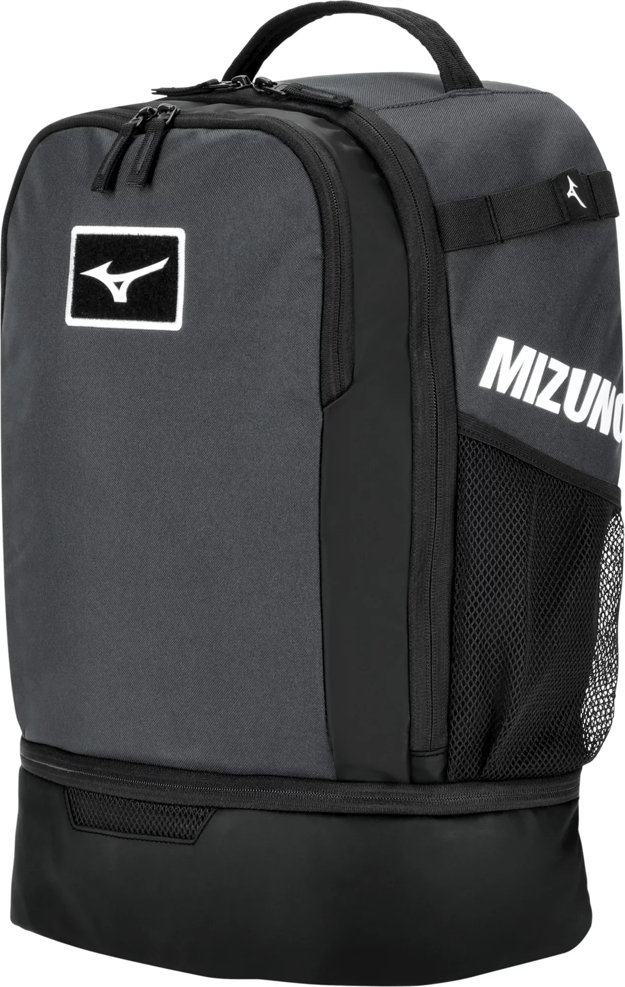 FEATURES: The NEW Crossover Backpack is a versatile bag offered in various team colors, built to seamlessly switch between sports With its utility loops, you can tailor the storage to fit your specific needs, whether it's swimsuits, kneepads, or bats Enhanced padding in the shoulder straps and back pad ensures unparalleled comfort during extended days at the court or out at the field Plus, it features a separate ventilated shoe compartment, making it ideal for those long tournament days Bat Sleeves: Store up to 2 bats or use as a water bottle pouch. Mizuno Aerostraps: For maximum comfort carrying all of your gear. ADDITIONAL DETAILS: Large Area for Embroidery: Makes adding personalization or your team's logo easy