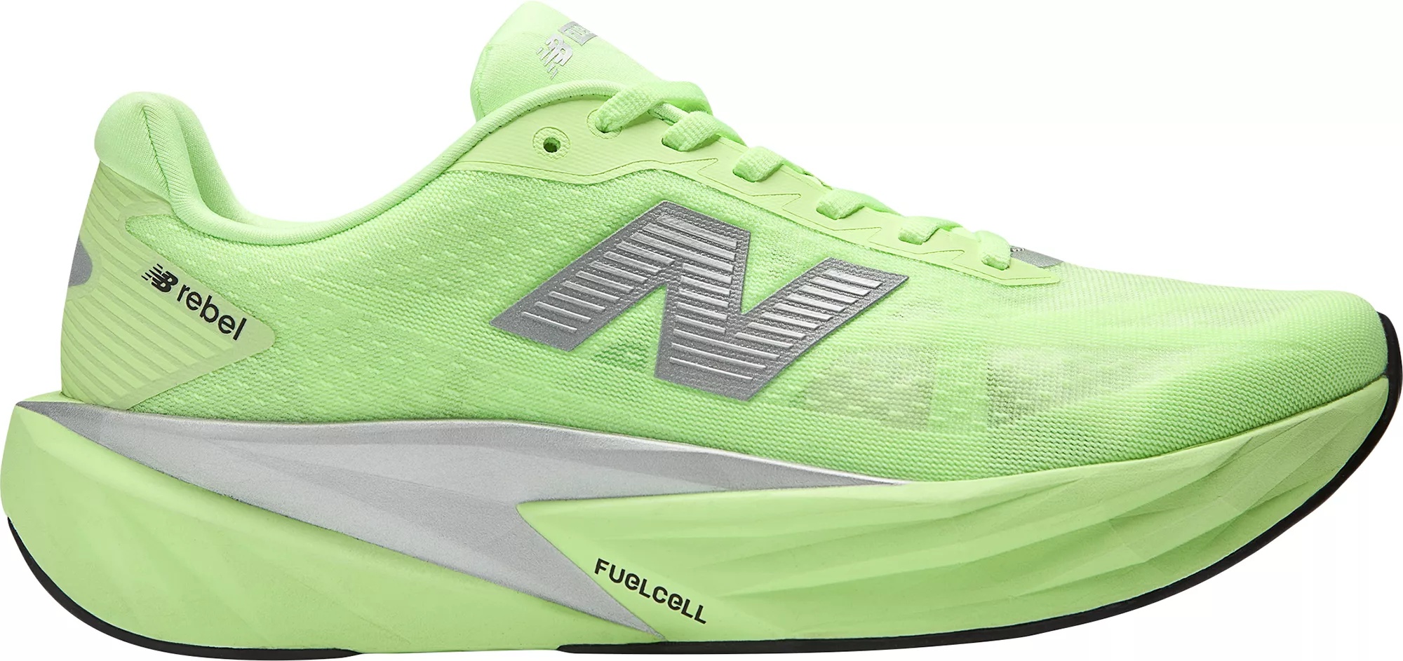 The FuelCell Rebel v5 was built to look and feel fast. With its streamlined, race-inspired mesh upper and colorblocking designs, the resulting silhouette boasts a modern style that inspires, surprises, and confidently stands out ahead of the pack. Incredibly lightweight, its blend of PEBA and EVA foams and considered midsole geometry provide a responsive and energetic underfoot, ideal for those miles you want to feel fast. Equipped with FuelCell midsole technology, this upbeat trainer can easily transition from long, steady runs to something swifter and more spontaneous. Design: Sleek, race-inspired mesh upper with bold colorblocking for standout style The updated heel and tongue construction improve comfort, especially during faster-paced runs An engineered mesh upper provides breathable support, while the FantomFit design ensures ultra-light bonded structure In-Shoe Comfort: It delivers a propulsive ride thanks to FuelCell midsole technology, helping to drive you forward with every step A blend of PEBA and EVA foams in the midsole offers lightweight cushioning and a responsive underfoot feel, ideal for both long runs and quick workouts Durability & Traction: A redesigned outsole with added rubber at the forefoot enhances durability and traction where you need it most Additional Details: The shoe is incredibly lightweight, weighing just 227 grams (8 oz), making it perfect for daily training without sacrificing speed 6mm heel stack of midsole + outsole (due to variances created during the development and manufacturing processes, all references to 6mm stack are approximate)