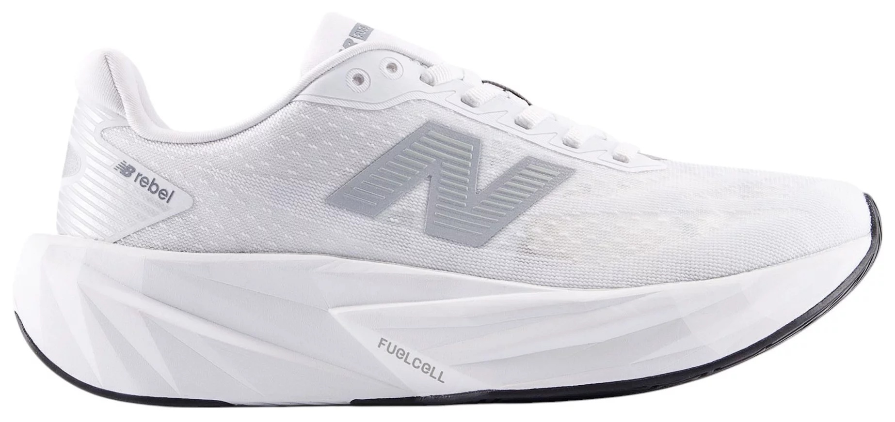 The FuelCell Rebel v5 was built to look and feel fast. With its streamlined, race-inspired mesh upper and colorblocking designs, the resulting silhouette boasts a modern style that inspires, surprises, and confidently stands out ahead of the pack. Incredibly lightweight, its blend of PEBA and EVA foams and considered midsole geometry provide a responsive and energetic underfoot, ideal for those miles you want to feel fast. Equipped with FuelCell midsole technology, this upbeat trainer can easily transition from long, steady runs to something swifter and more spontaneous. Design: Sleek, race-inspired mesh upper with bold colorblocking for standout style The updated heel and tongue construction improve comfort, especially during faster-paced runs An engineered mesh upper provides breathable support, while the FantomFit design ensures ultra-light bonded structure In-Shoe Comfort: It delivers a propulsive ride thanks to FuelCell midsole technology, helping to drive you forward with every step A blend of PEBA and EVA foams in the midsole offers lightweight cushioning and a responsive underfoot feel, ideal for both long runs and quick workouts Durability & Traction: A redesigned outsole with added rubber at the forefoot enhances durability and traction where you need it most Additional Details: The shoe is incredibly lightweight, weighing just 180 grams (6.3 oz), making it perfect for daily training without sacrificing speed 6mm heel stack of midsole + outsole (due to variances created during the development and manufacturing processes, all references to 6mm stack are approximate)