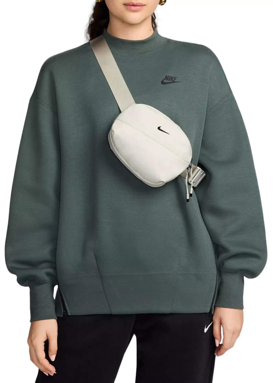 Fit & Design: A versatile crossbody bag The adjustable strap gives you multiple styling options to suit a variety of looks Interior slip pockets make organization a breeze, and the rear zippered pocket keeps small items within easy reach The aluminum Swoosh logo elevates the look Additional Details Dimensions: 7"L x 3"W x 5"H Capacity: 2L Care: Spot clean when necessary