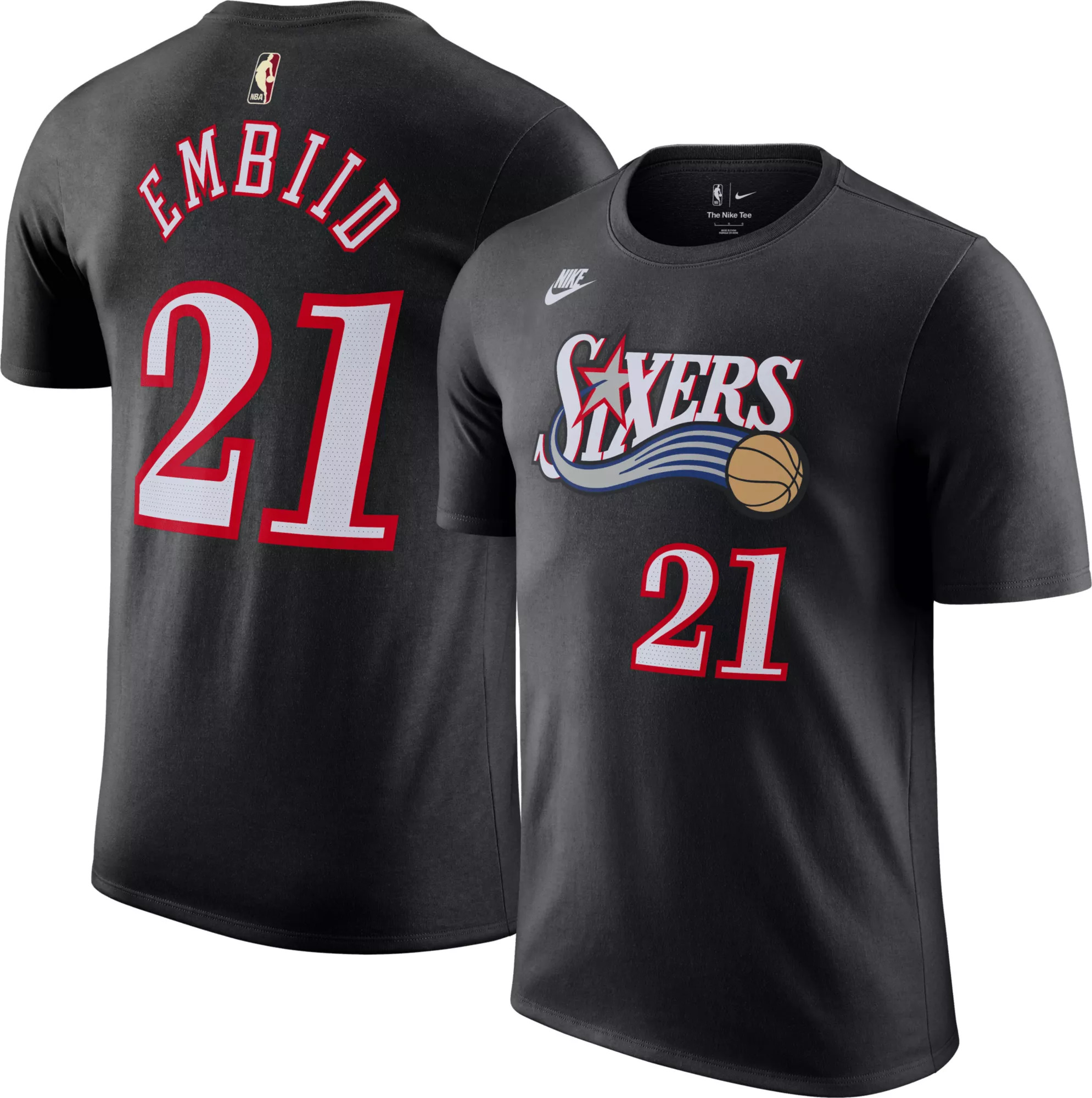 Nike Adult Philadelphia 76ers Joel Embiid #21 Hardwood Classics Black T-Shirt