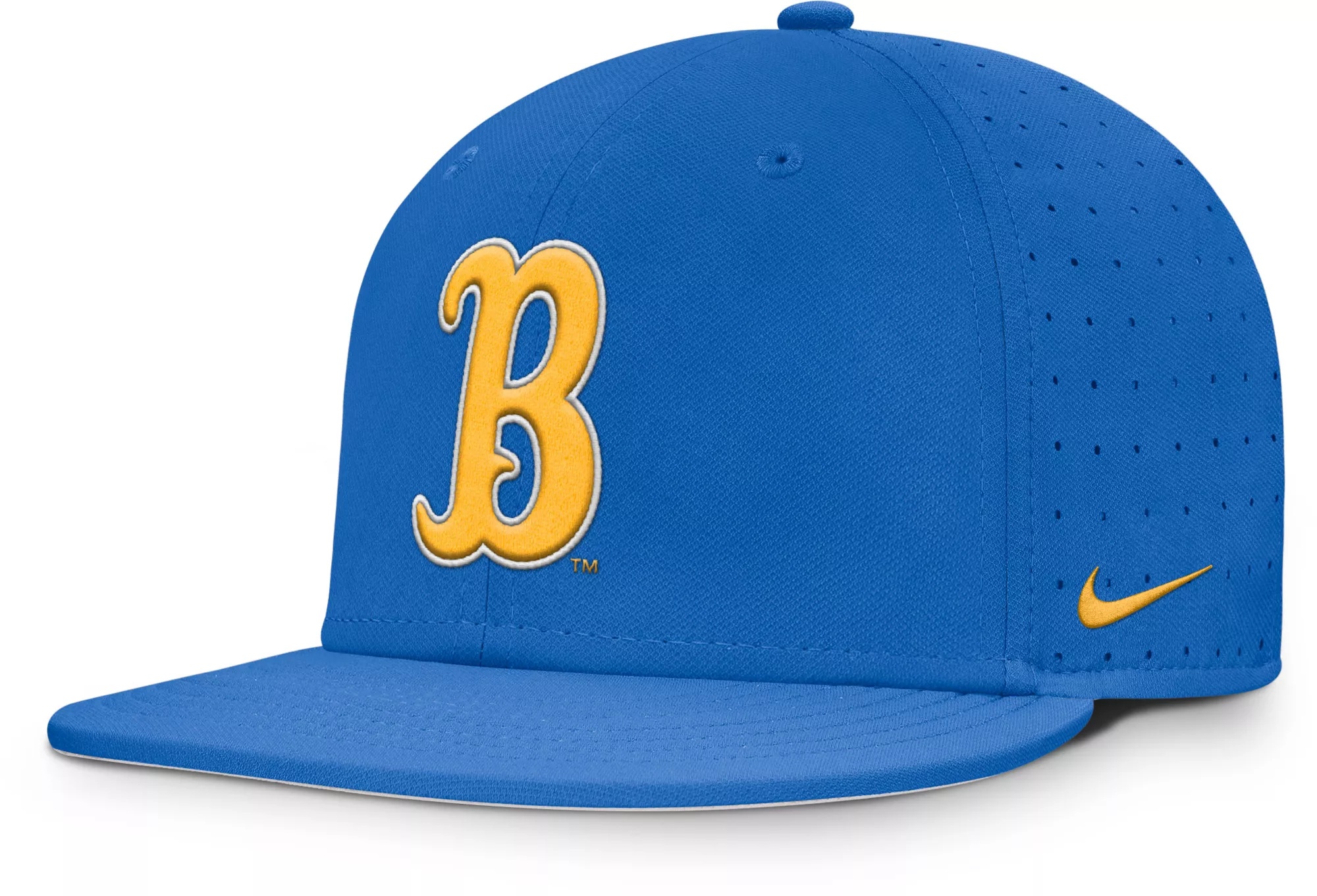 Design Flat brim, fitted cap Embroidered eyelets for added ventilation On-Field college baseball style Style and Team Spirit 3D embroidered team logo at front crown Swoosh™ design trademark Technology Integrated Dri-FIT® moisture-wicking technology Lightweight Nike® AeroBill construction Laser perforated ventilation Additional Details One size fits most Officially licensed collegiate product