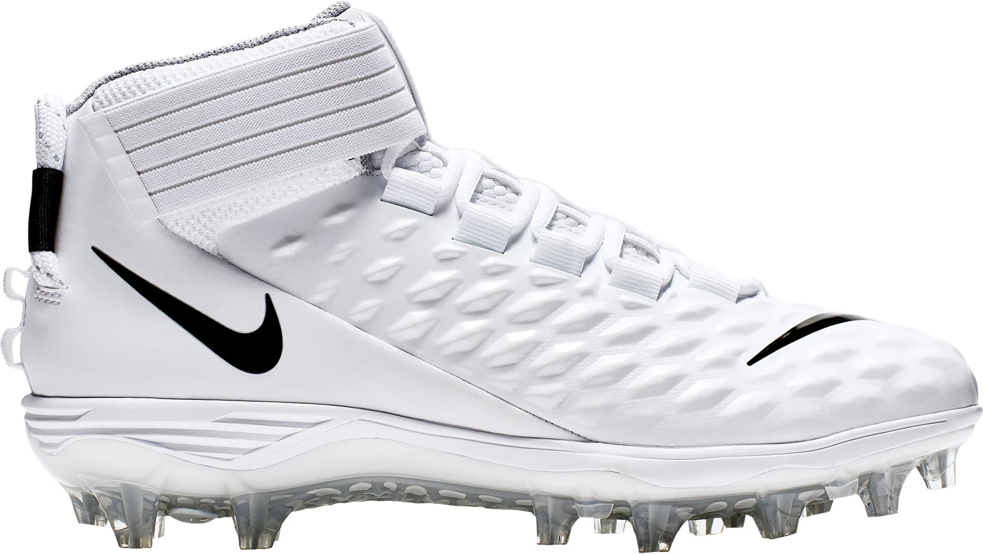 Please Note: Shoes may not ship in original box Make sure your opponent’s know it’s going to be a long day with each snap in the Nike® Force Savage Pro 2 football cleats. The Force savage Pro 2 offers a locked down fit, maximum cushioning and enhanced traction for game changing play. DESIGN: Synthetic leather in the upper provides support and durability Webbing engages with the laces to lock you in Hook and loop ankle strap helps secure the fit Molding details add durability IN-SHOE COMFORT: Internal pads cup the heel on both sides for a secure, comfortable fit Foam midsole for added cushioning DURABILITY & TRACTION: TPU plate delivers lightweight durable support, exceptional acceleration and traction for top notch play
