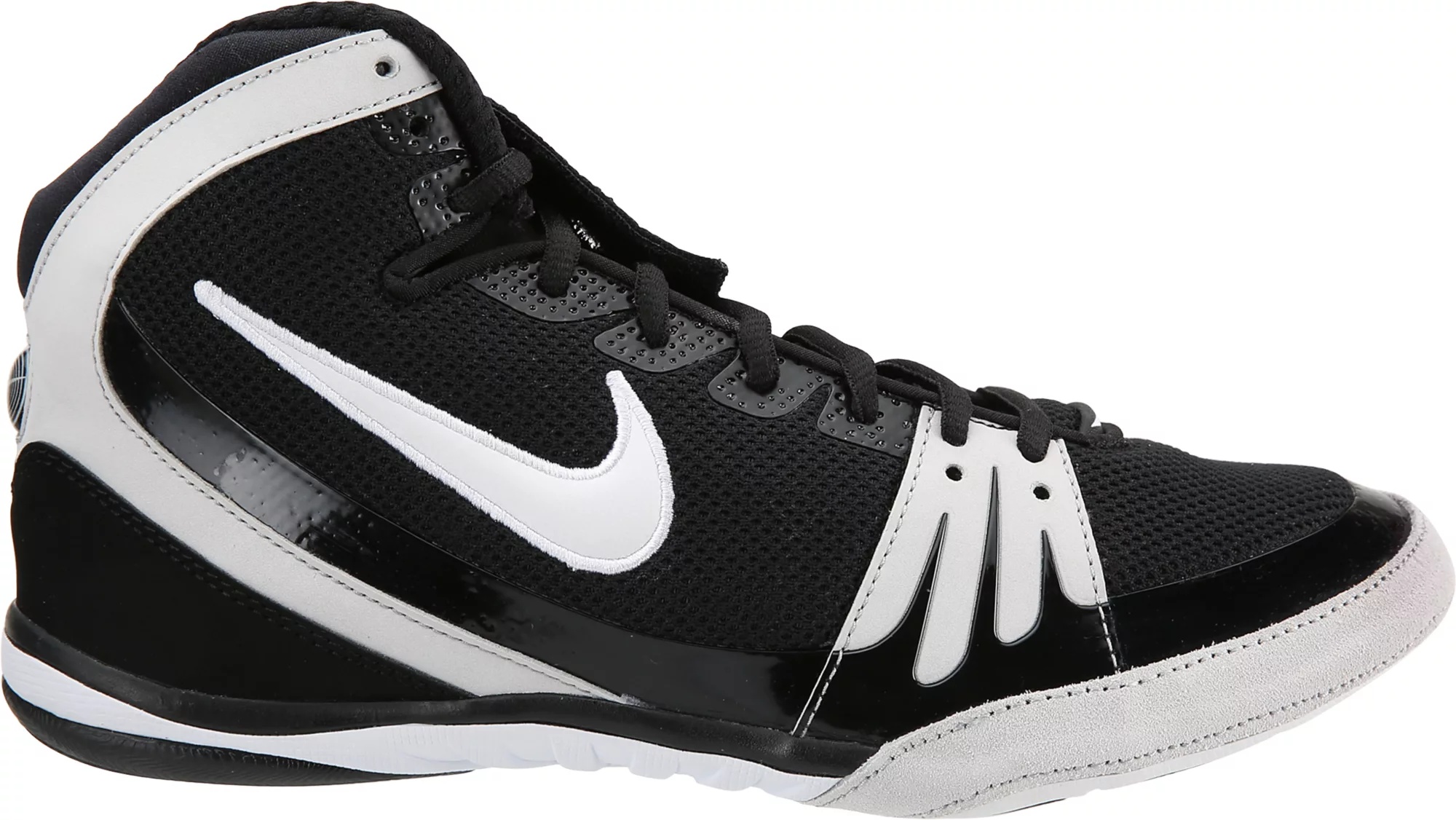 Beat your opponent in every way imaginable in the Freek. A mesh upper reinforced with leather and synthetic materials offers unmatched support, fit and breathability. The Nike® Freek wrestling shoe has a Velcro lace management system that meets all of the high school and collegiate standards while a rubber outsole with flex grooves provides maximum traction and speed to elude the opposition prior to striking for victory. FEATURES: Mesh upper with synthetic and leather reinforcements provide maximum breathability, support and a locked down fit Velcro lace management system keeps your feet stabilized and comfortable all match long Flex grooves in the outsole allow for superior flexibility and movement on the mat, while built in ventilation in the outsole helps dry you shoes after grueling matches and practices