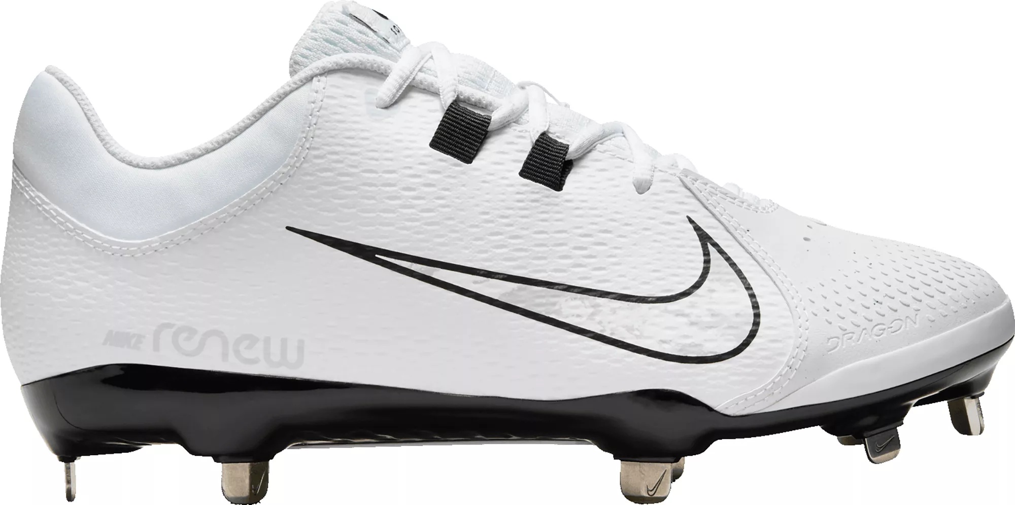 Design: Synthetic and mesh upper for breathable support Nike® Drag-On constructed forefoot for lightweight, but strong grip In-Shoe Comfort: Renew cushioning helps your feet feel comfortable from the first pitch to the last out of the game Durability & Traction: 8 angular cleats set in a flexible, plastic plate gives you traction and stability