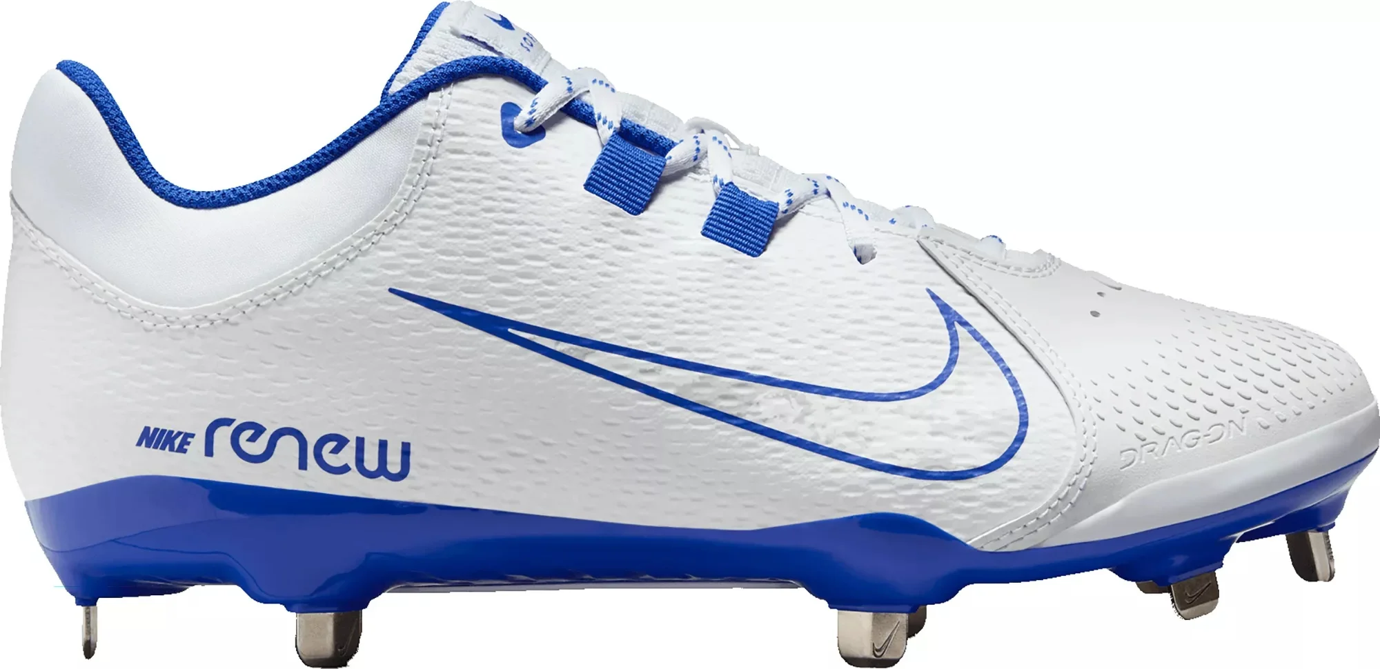 Design: Synthetic and mesh upper for breathable support Nike® Drag-On constructed forefoot for lightweight, but strong grip In-Shoe Comfort: Renew cushioning helps your feet feel comfortable from the first pitch to the last out of the game Durability & Traction: 8 angular cleats set in a flexible, plastic plate gives you traction and stability