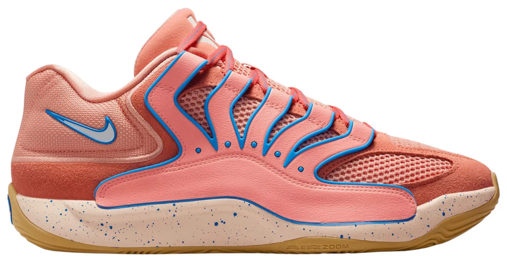 KD’s greatest gift? His stamina. The Slim Reaper never tires, both in terms of passion for the game or energy come crunch time. A combo of Air Zoom cushioning and Nike Air gives him unreal responsive cushioning. And we poked holes all over the upper to help reduce the weight and add breathability, so he can hoop all day. Design: The upper is made of open-holed sandwich mesh, which not only offers a different level of breathability when the action heats up, but also helps reduce the weight of the shoe A tough plastic cage offers firmness on both sides of your foot. It helps keep you upright In-Shoe Comfort: A big forefoot Air Zoom unit offers a different level of velocity when exploding, either on the dead run or out of a standstill position The forefoot unit offers a different level of snappy pop when the game revs up Latest version of Cushlon foam adds a soft, comfortable sensation and freshness for four quarters The bottom layer of the upper has Nike Air cushioning at the heel to add a pop in your step A strong plastic plate directly underfoot conforms as you flex Additional Details: