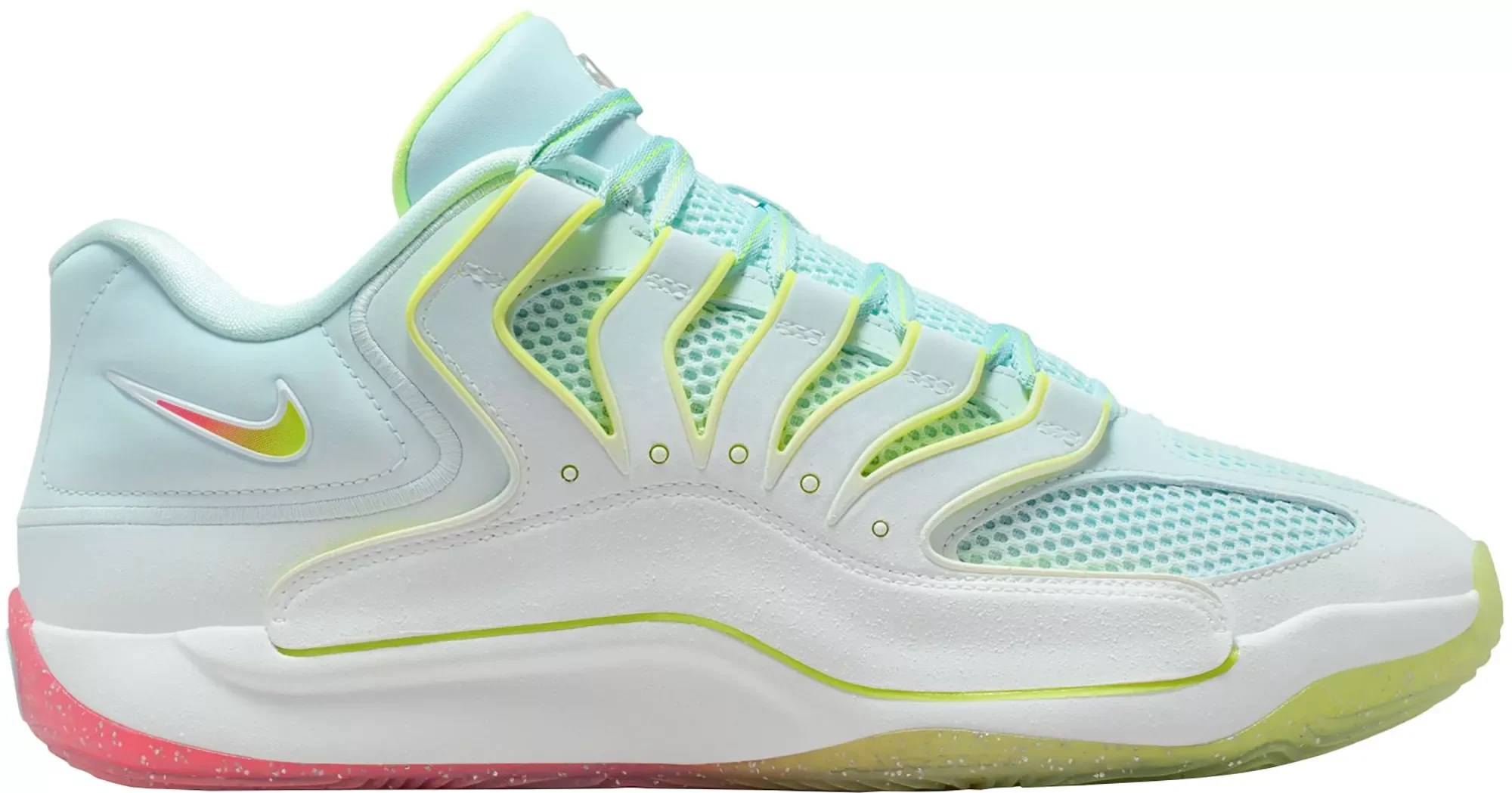 KD’s greatest gift? His stamina. The Slim Reaper never tires, both in terms of passion for the game or energy come crunch time. A combo of Air Zoom cushioning and Nike Air gives him unreal responsive cushioning. And we poked holes all over the upper to help reduce the weight and add breathability, so he can hoop all day. Design: The upper is made of open-holed sandwich mesh, which not only offers a different level of breathability when the action heats up, but also helps reduce the weight of the shoe A tough plastic cage offers firmness on both sides of your foot. It helps keep you upright In-Shoe Comfort: A big forefoot Air Zoom unit offers a different level of velocity when exploding, either on the dead run or out of a standstill position The forefoot unit offers a different level of snappy pop when the game revs up Latest version of Cushlon foam adds a soft, comfortable sensation and freshness for four quarters The bottom layer of the upper has Nike Air cushioning at the heel to add a pop in your step A strong plastic plate directly underfoot conforms as you flex Additional Details: Product shown in Men's and Women's sizes Example: M7.5/W9.0 = Men's size 7.5, Women's size 9.0