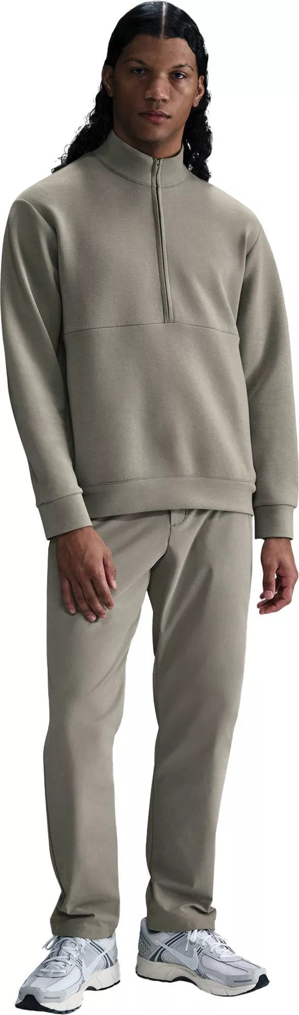 Stay comfortable and stylish all day with the Nike Men's 24.7 PerfectStretch Dri-FIT 5-Pocket Regular Fit Pants. Crafted with PerfectStretch fabric, these pants offer four-way stretch and a polished look that easily transitions from work to play. Featuring multiple pockets and a signature locker loop, they are perfect for carrying your essentials and staying organized. Made for all-day comfort, PerfectStretch fabric has four-way stretch and a polished look. These straight-leg pants put this fabric to good use, adding plenty of storage and a locker loop for easy hanging. Fit & Design: Standard fit pants Made with sustainable materials, supporting Nike's Move to Zero journey towards zero carbon and zero waste PerfectStretch fabric is a tailored, four-way stretch fabric made to minimize wrinkles and easily transition from work to activity and back again Elastic waistband and bonded belt loops provide a secure fit Hidden zippered pocket inside the right-hand pocket fits most phones Mesh drop-in pocket on the left side can hold small essentials All pockets are stitched down inside to prevent shifting throughout the day Signature locker loop at wearer's left waistband seam Technology: Nike Dri-FIT technology moves sweat away from your skin for quicker evaporation, helping you stay dry and comfortable Provides UVA and UVB protection from the sun in the areas covered by the garment Additional Details: To protect exposed areas, the use of good quality sunscreen is recommended Machine wash