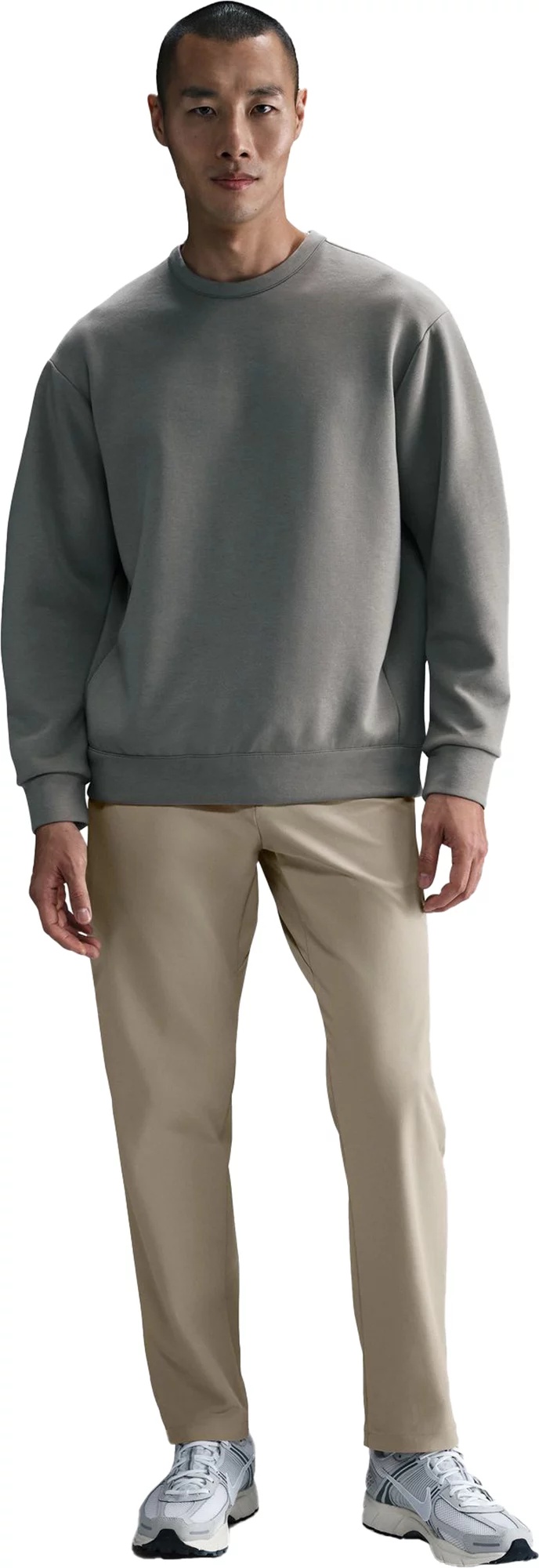 Stay comfortable and stylish all day with the Nike Men's 24.7 PerfectStretch Dri-FIT 5-Pocket Regular Fit Pants. Crafted with PerfectStretch fabric, these pants offer four-way stretch and a polished look that easily transitions from work to play. Featuring multiple pockets and a signature locker loop, they are perfect for carrying your essentials and staying organized. Made for all-day comfort, PerfectStretch fabric has four-way stretch and a polished look. These straight-leg pants put this fabric to good use, adding plenty of storage and a locker loop for easy hanging. Fit & Design: Standard fit pants Made with sustainable materials, supporting Nike's Move to Zero journey towards zero carbon and zero waste PerfectStretch fabric is a tailored, four-way stretch fabric made to minimize wrinkles and easily transition from work to activity and back again Elastic waistband and bonded belt loops provide a secure fit Hidden zippered pocket inside the right-hand pocket fits most phones Mesh drop-in pocket on the left side can hold small essentials All pockets are stitched down inside to prevent shifting throughout the day Signature locker loop at wearer's left waistband seam Technology: Nike Dri-FIT technology moves sweat away from your skin for quicker evaporation, helping you stay dry and comfortable Provides UVA and UVB protection from the sun in the areas covered by the garment Additional Details: To protect exposed areas, the use of good quality sunscreen is recommended Machine wash