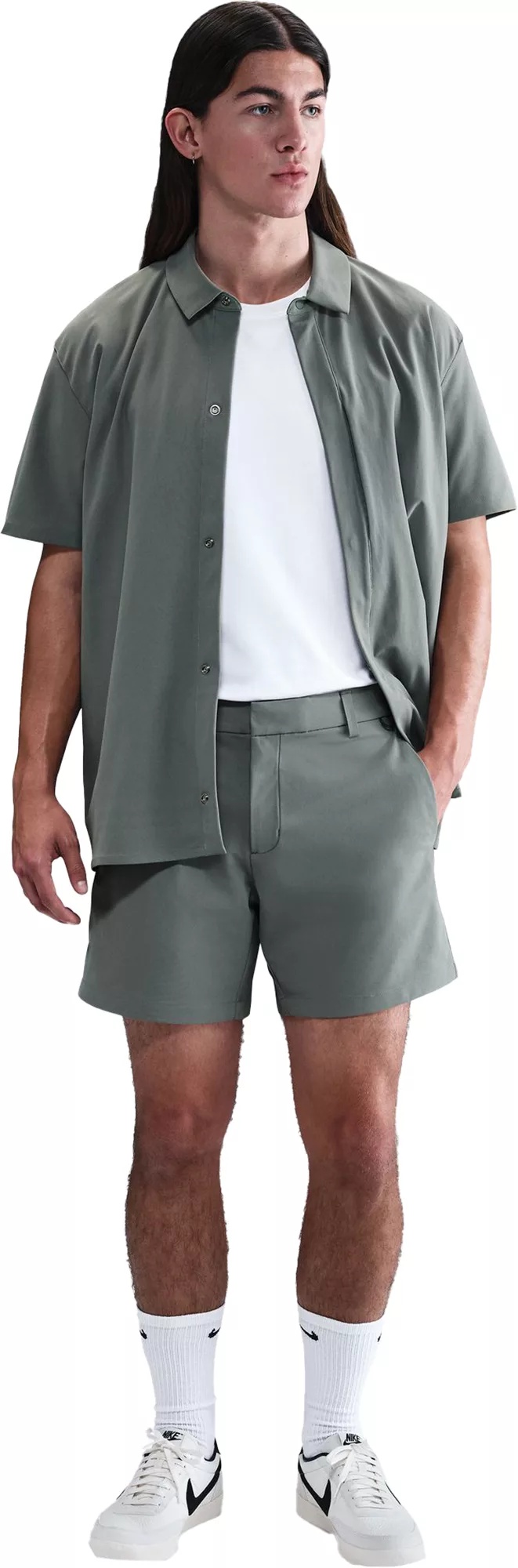 Made for all-day comfort, PerfectStretch fabric has 4-way stretch and a polished look. These 6 shorts put these features to good use, adding a 5-pocket design for convenient storage and a locker loop for easy hanging. Fit & Design: Standard fit shorts Elastic waistband and internal drawcord gives a secure fit Hidden zippered pocket on the right side can fit most phones 2 zippered back pockets and 2 side pockets offer plenty of room to carry your valuables Signature locker loop on left hip ensures easy hanging Matte silicone branding on left hip adds to your style Technology: Nike Dri-FIT technology moves sweat away from your skin for quicker evaporation, helping you stay dry and comfortable Provides UVA and UVB protection from the sun in the areas covered by the garment Additional Details: Inseam: 6 To protect exposed areas, the use of good quality sunscreen is recommended