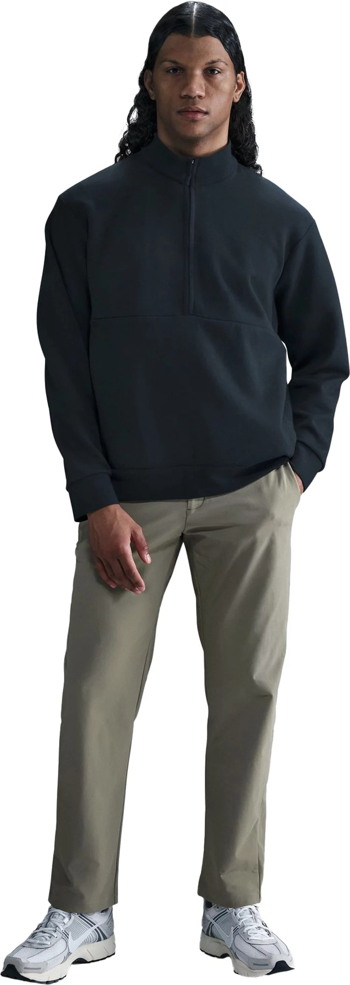 Experience ultimate comfort and style with the Nike Men's 24.7 PerfectStretch Dri-FIT Regular Fit Chino Pants. Designed with a four-way stretch fabric and a contoured waistband, these pants offer a secure fit that adapts to your shape. Ideal for any activity, they feature multiple pockets for convenient storage and Nike's Dri-FIT technology to keep you dry and comfortable all day long. Made for all-day comfort, PerfectStretch fabric has four-way stretch and a polished look. These straight-leg chinos put it to good use, adding plenty of storage and a locker loop for easy hanging. Fit & Design: Standard fit pants Made with sustainable materials, supporting Nike's Move to Zero journey towards zero carbon and zero waste Ultra-stretchy, contoured waistband adapts to your shape for a secure fit without pinching or slipping Bonded belt loops Front zipper with hook-and-bar closure Gusset gives extra flexibility and comfort on the move Zippered back pockets provide secure storage Hidden zippered pocket inside the right pocket fits most phones Mesh drop-in pocket on left side fits small essentials Signature locker loop at wearer's left waistband seam Matte silicone logo on back left hip Technology: Nike Dri-FIT technology moves sweat away from your skin for quicker evaporation, helping you stay dry and comfortable Provides UVA and UVB protection from the sun in the areas covered by the garment Additional Details: To protect exposed areas, the use of good quality sunscreen is recommended Machine wash