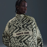 Channeling the look of sport and a vintage feel, this woven jacket offers water-repellent material, an oversize fit and graphics that pop. Fit & Design Oversized fit Designed with a boxy look with extra room through the body Elastic waist with a bungee allows you to adjust the fit at your waist Stand up collar with 1/2 zip placket Snap secure kangaroo pocket Embroidered Nike Air logo Nike Air silicone patch Technology Water-repellent finish helps keep you dry in wet weather