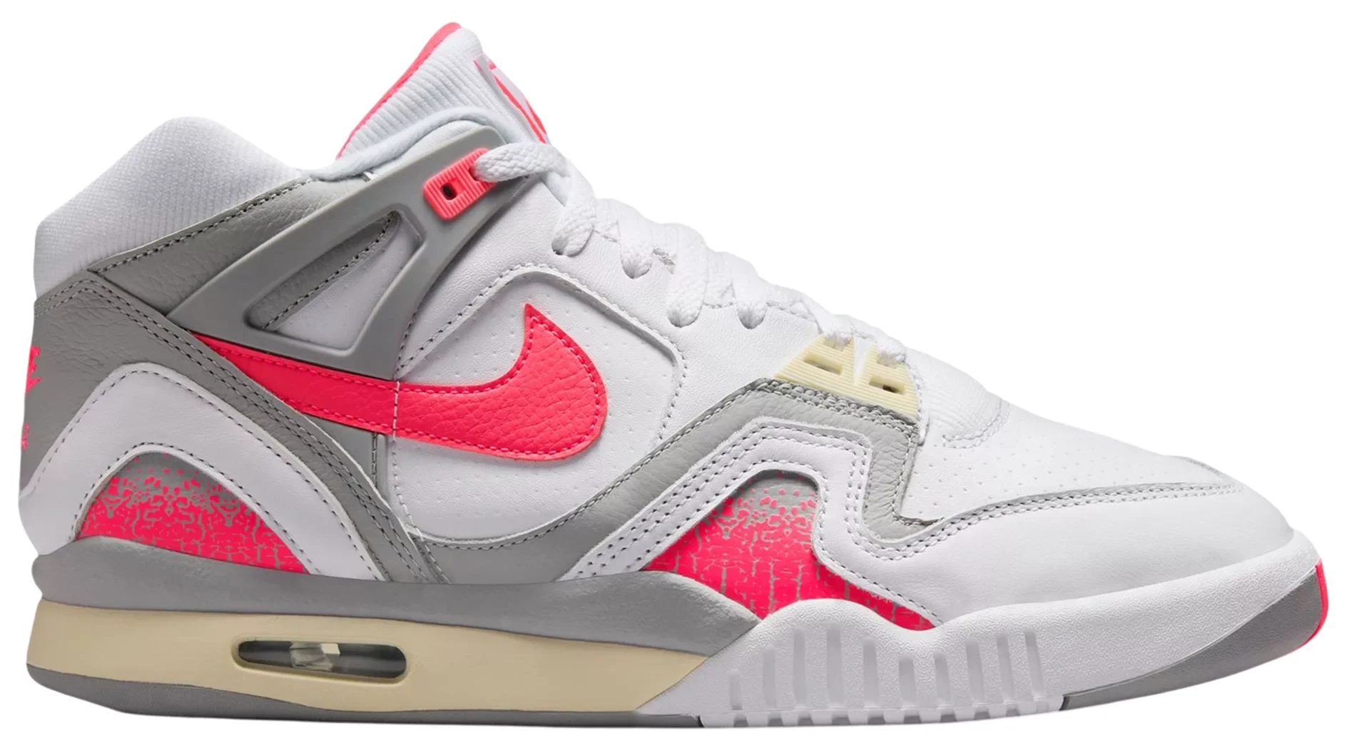 Hitting the '90s tennis scene on the feet of the hottest player at the time, the Air Tech Challenge 2 turned heads with its unconventional style. Well, it's back—with the same attitude that made it an icon. This edition pairs crisp white leather with Light Smoke Grey and Racer Pink accents, reinvigorating one of its most beloved colorways. Fully equipped with visible Max Air cushioning, it's no surprise this pioneering cult classic has stood the test of time. Design Leather upper Molded eyelets In-Shoe Comfort Max Air Cushioning for added comfort Durability & Traction Rubber outsole
