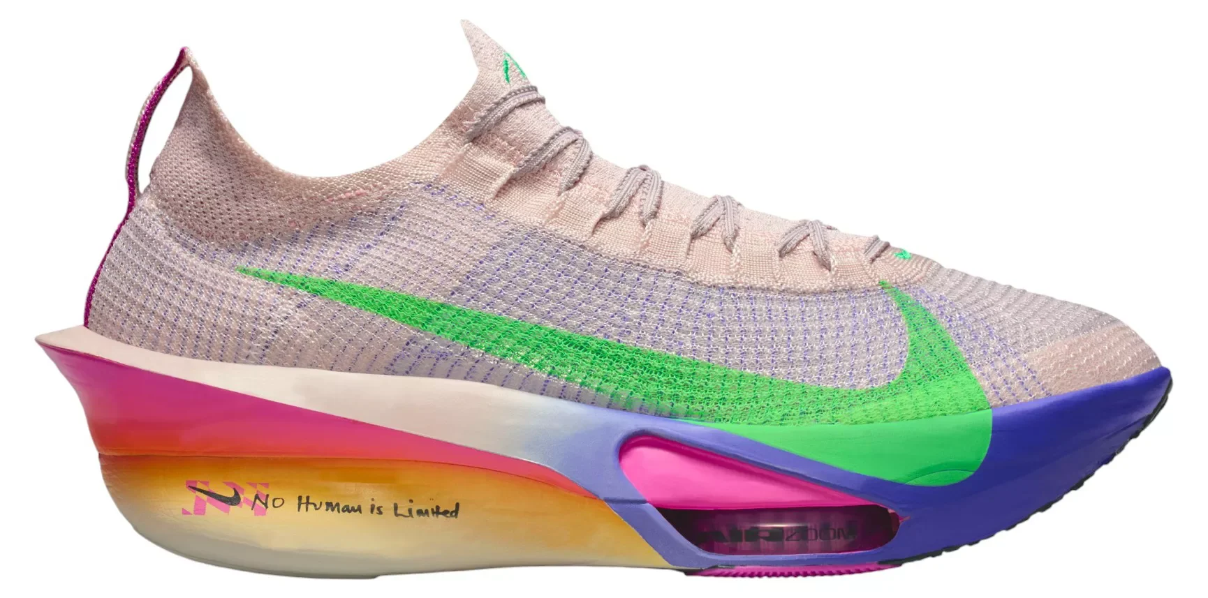Fine-tuned for marathon speed, the Alphafly 3 helps push you beyond what you thought possible. Three innovative technologies power your run: A double dose of Air Zoom units helps launch you into your next step; a full-length carbon fiber plate helps propel you forward with ease; and a heel-to-toe ZoomX foam midsole helps keep you fresh from start to 26.2. Time to leave your old personal records in the dust. Design: All-new Atomknit upper designed for improved multidirectional containment and breathability Notched laces offer a secure but soft lace-up Integrated knit tongue with lofted padding helps alleviate lace pressure Features a slightly wider carbon fiber plate than previous versions for increased stability Full-length carbon fiber plate delivers a propulsive sensation the helps you smoothly transition through every stride and tackle turns with confidence In-Shoe Comfort: 2 forefoot Air Zoom units combine with ZoomX foam to store and return energy back to you, powering every step Fully connected ZoomX foam creates an ultralight and cushioned feel, helping you stay fresh and comfortable from mile 1 to 26.2 Additional Details: Weight: 218g / 7.7 oz (Men’s size 10) Heel-to-toe drop: 8mm